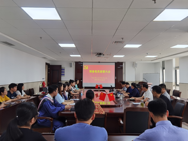 本网讯 6月24日上午,马克思主义学院党总支预备党员宣誓大会在T1512会议室举行,学院党总支副书记、院长吴月红主持会议,学院党政领导、总支委员、支部书记、辅导员以及全体研究生党员参加。