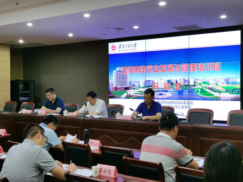 芜湖市住房与城乡建设局党委书记、局长马兴起、芜湖市住房与城乡建设局副局长吴文斌、安徽工程大学人文学院党委书记邓英扣等领导参加了培训班的开班仪式。马兴起在开班仪式上致辞,强调本次培训班的重要意义,鼓励所有学员把握好本次培训学习机会,强化建筑业管理能力,切实提高自身建筑业监管水平。