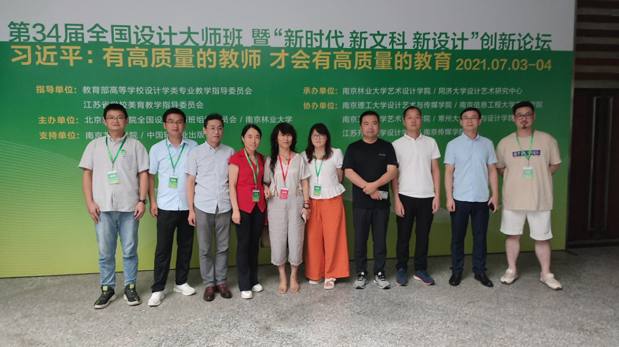 本网讯 2021年7月3-4日,第34届全国设计大师班(南京站)暨“新时代·新文科·新设计”创新论坛在南京林业大学举办。我校艺术学院10名教师代表在王小元副院长的带领下,与来自全国36所院校的263名学员参加了此次活动。