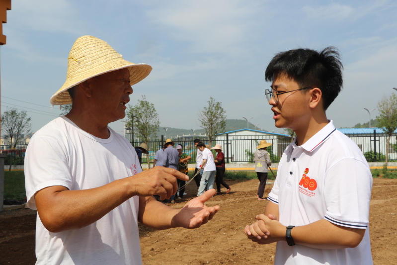 “面朝黄土背朝天,一身气力百身汗”描述的是劳动人民辛勤耕作的身影,在红旗渠精神营地的精神传承馆旁,同样有这样一群劳动人民,顶着烈日、拉着铁犁、使出一身的力气,挥洒着汗水,和当地的农民一起翻土、除草、播撒着小麦种子。他们一边亲身体验着劳动,一边和农民们交流、学习。