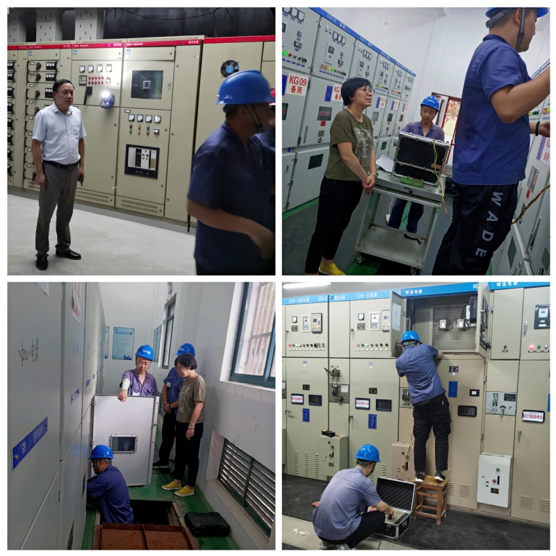 炎炎烈日,挥汗如雨,现场工作人员严格按照规范程序,认真开展预防性试验工作,截止8月11日,共完成1个开闭所、6个区域变配电房、7个箱变、62个楼栋配电间(配电柜)等设备试验及隐患消缺。在停电试验过程中,累计完成78台高压柜的绝缘电阻测试、工频耐压试验工作;完成30台高压断路器的绝缘电阻测试、回路电阻测试、机械特性及通断测试工作;完成39根高压电缆的绝缘电阻测试、直流耐压泄漏电流测试工作;完成20台变压器的绝缘电阻测试、直流电阻测试、交流耐压测试工作;完成42台继电保护装置速断及过流测试工作。同时,对各高、低压电气设备内的积尘、蛛网进行了集中清理,并对电气设备内的各部位连接螺栓进行了全面检查,对70余处松动的螺栓加以紧固,更换各配电柜内锈蚀螺杆150余套。通过此次预防性试验,有效保护了变压器及线路安全运行,最大限度消除安全隐、避免电气安全事故发生。