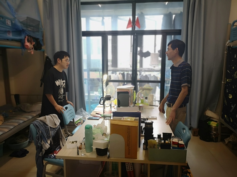 本网讯 8月15日下午,电气工程学院党委书记杨会成、党委副书记李恒奎带领相关辅导员来到学生书院7#-1看望暑期留校学生,并为同学们送上矿泉水、方便面等慰问物资。