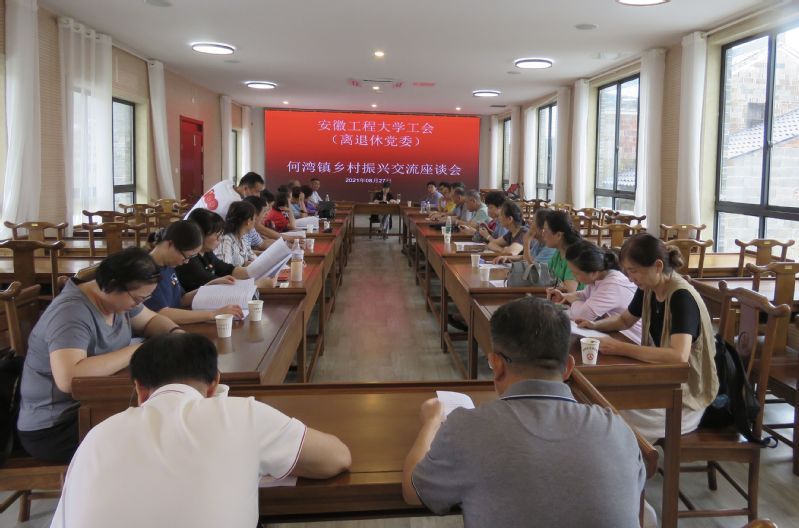 随后,调研组前往龙山学院进行乡村振兴交流座谈,校工会副主席、离退休党委副书记张寅红主持座谈会。龙山村书记胡太平首先对苏国红书记一行的到来表示热烈欢迎,向与会人员简要介绍了村情沿革和民情风貌以及在党建引领乡村振兴发展建设方面开展的工作和取得的成绩。苏国红在讲话中首先代表学校对驻村工作队同志们的辛勤付出表示感谢,对学校的基本情况和近年来与芜湖市的合作共建情况,以及在助力乡村振兴发展方面的情况做了介绍。就如何发挥高校优势为助力乡村振兴发展进行了深入交流。座谈会上,结合党史学习教育要求,苏国红围绕准确把握习近平总书记“七一”重要讲话精神学习的主题主线,深刻领会伟大建党精神内涵实质以及伟大复兴的不可逆转进程等方面进行了详细解读。她希望,通过开展党史学习教育和参观调研乡村振兴建设发展更好地领悟习近平总书记“七一”讲话精神内涵。她要求,离退休党委和工会在今后的一段时间里,要把学习“七一”讲话作为一项重要政治任务抓,要结合党史学习教育和习近平总书记关于工会工作重要论述及工运历史学,要理论结合实际学,不断拓展学习方式,注重学习成效;要结合教职工实际需求学,要根据党史学习教育中“我为群众办实事”工作要求,实实在在落实好职工的切身利益;要结合工会职能学,团结动员广大职工在学校高质量建设发展中建功立业;要结合立德树人根本任务学,引领师德师风建设进一步提升,积极营造风清气正的育人氛围;五要充分发挥高校工会独特优势,在乡村振兴工作中贡献更大力量。