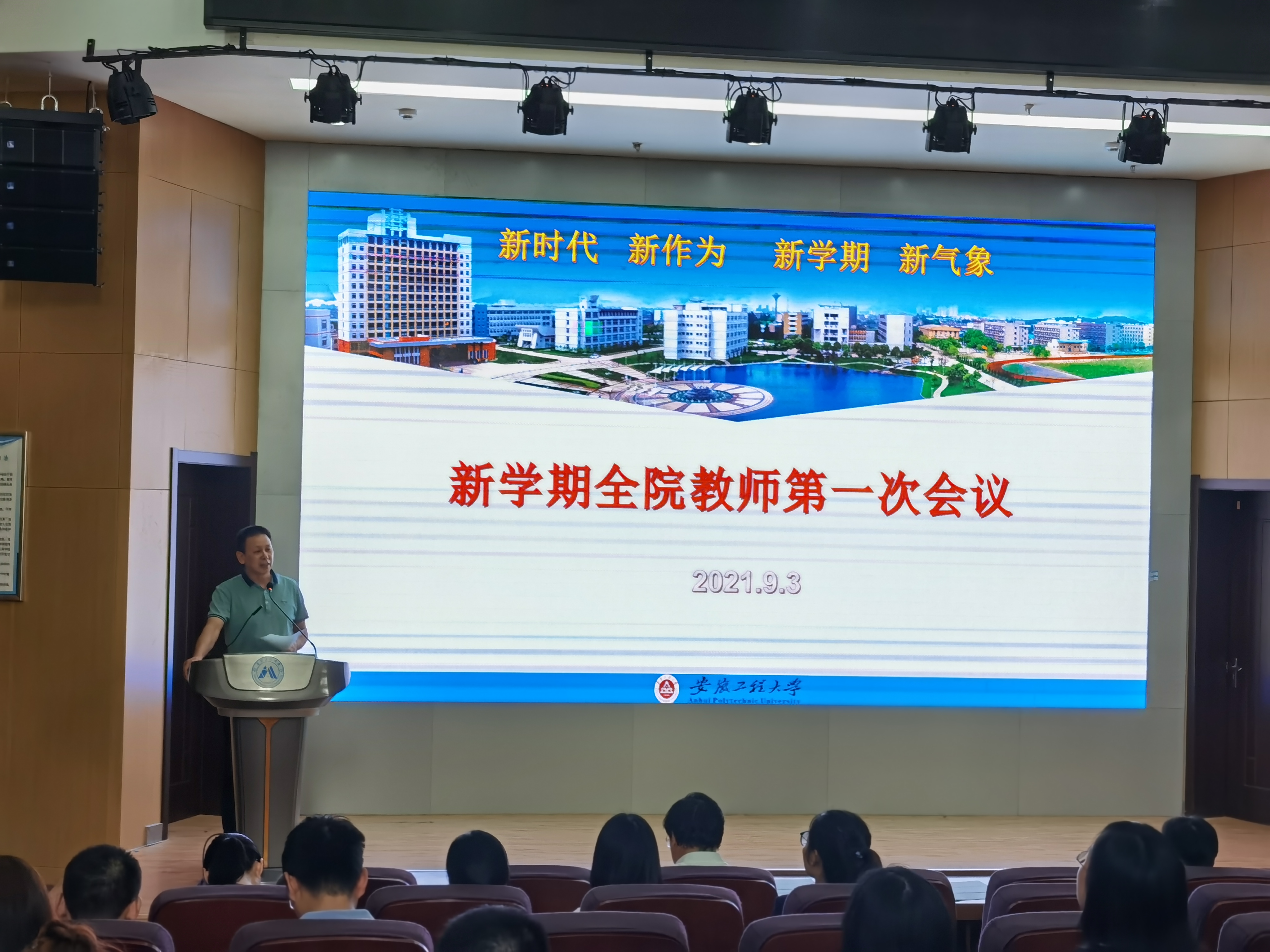 本网讯 9月3号下午,经济管理学院全体教职工在C座7楼报告厅召开新学期第一次教职工大会,会议由学院院长龚本刚主持。