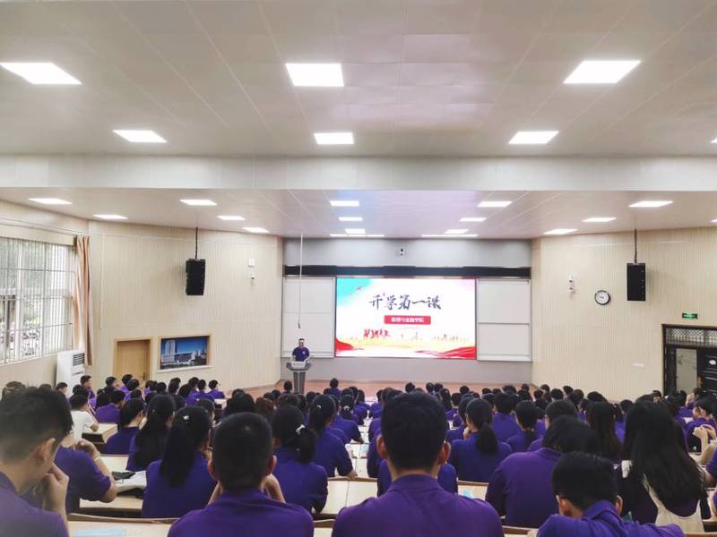 学院党委书记周毅仁讲述开学第一课之“党史教育篇”。他声情并茂的讲述了共产党在黑暗中诞生、在苦难中成长、在挫折中奋起、在奋斗中壮大的故事,带领同学们一起回顾了共产党带领人民从苦难走向辉煌的光辉历程,同时向新生传达了习近平总书记在庆祝中国共产党成立100周年大会上的讲话精神。他强调,同学们生逢盛世、肩负重任,要胸怀“国之大者”,勉励同学们立大志、明大德、成大才、担大任,鼓足干劲、奋起拼搏。在讲话的最后,他带领全体同学集体宣誓:“请党放心,强国有我!”斗志高昂、响彻云霄的宣誓声将开学第一课的气氛推向高潮。
