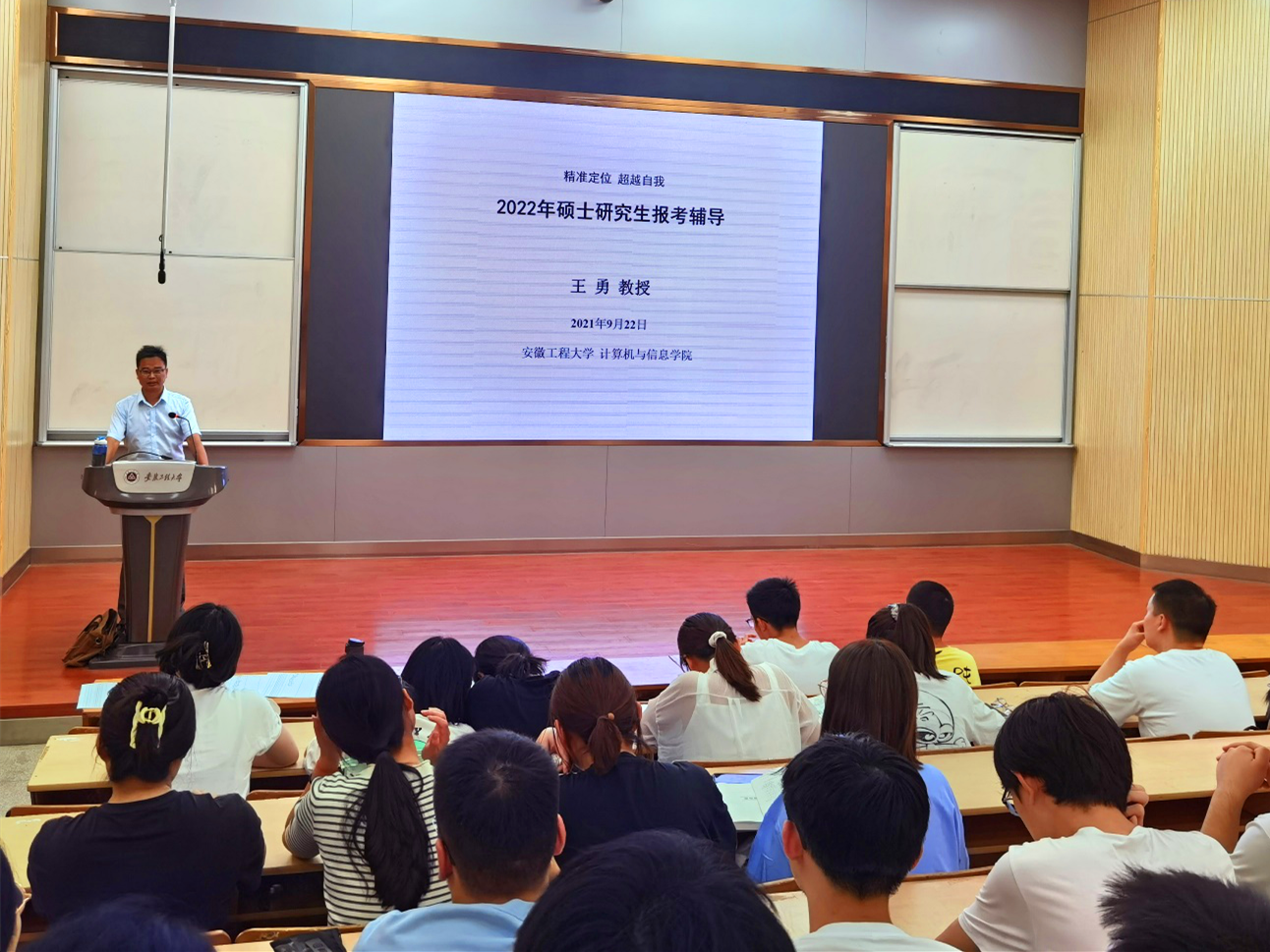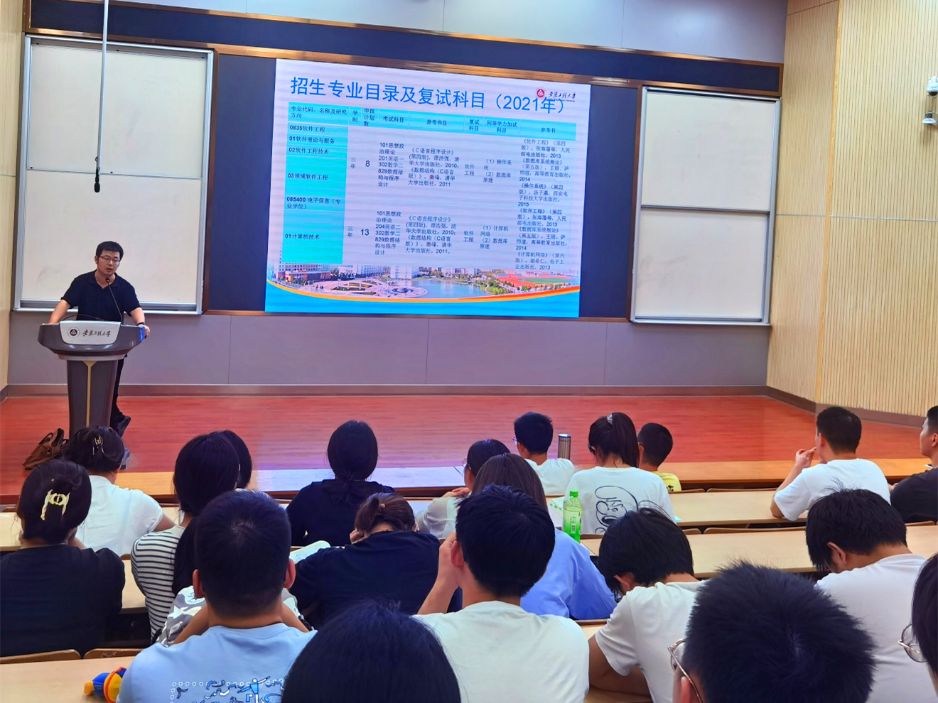 陈付龙介绍了安徽师范大学计算机相关专业的历史以及学院的基本情况,并对2022年的考研招生情况进行宣讲,让同学们更加清晰的了解安徽师范大学的考研信息,给予学生更加清晰的备考方向。