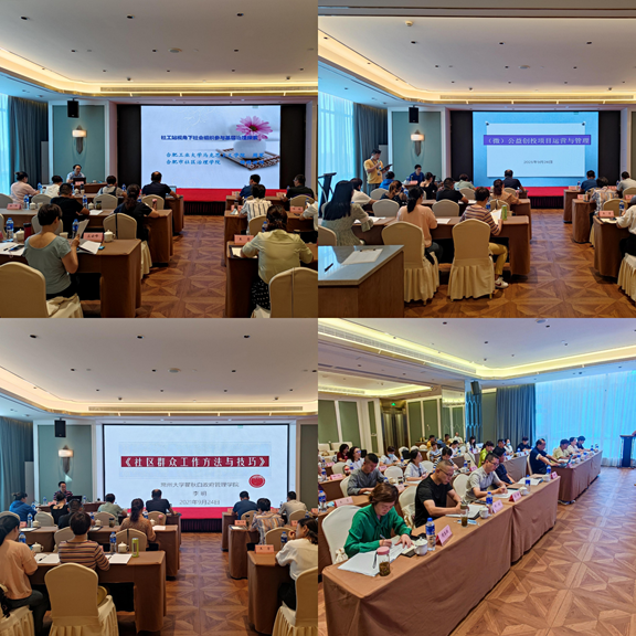 9月22至24日,研修班采用封闭集中授课方式,邀请了南京大学许云云博士,弋江区心暖花开社会组织联合会曹燕臻主任,合肥工业大学周军博士,常州大学瞿秋白政府管理学院李明副教授,以及安徽工程大学汪茂泰副教授前来授课,内容涵盖“公益创投项目书的申报与撰写、居民自组织的培养与发育、社工站视角下的社会组织参与与基层治理探索、社区群众工作方法与技巧,以及微公益创投项目运营与管理”等主题。本次研修班课堂讨论氛围热烈,通过理论联系实际的方式,让学员们对社会组织,基层治理以及公益创投项目等有了进一步的认识,对“五社联动”等社区治理新方法和新路径有了一定的启发和思考。