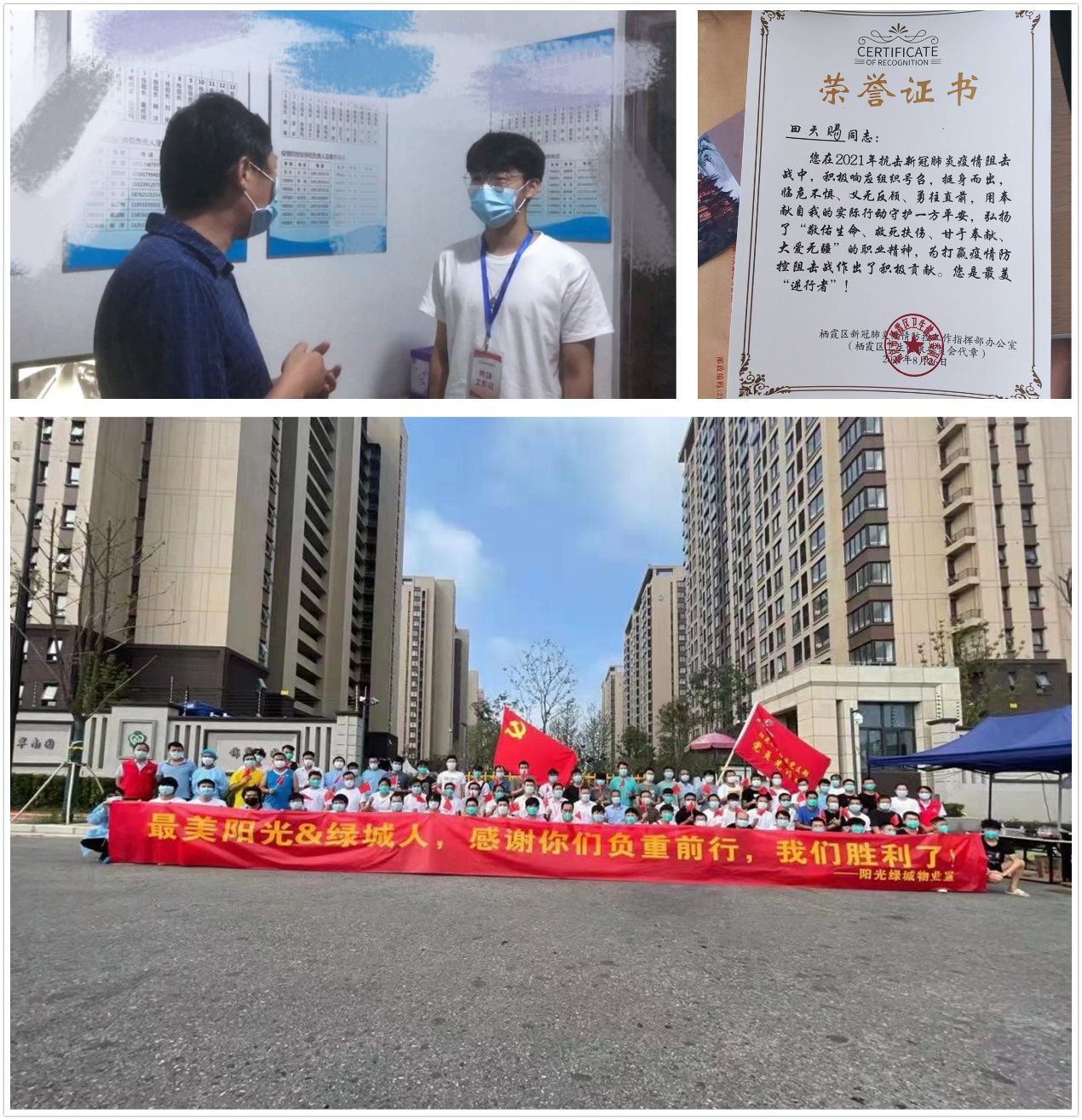 在志愿服务的24天里,田天赐不分昼夜,承担了为隔离区人员送餐、整理垃圾;为医疗人员运送急需医疗物资、检测试剂等工作,累计时长共达280余小时,服务了150余名人员,圆满的完成了疫情防控志愿服务工作。他表示,看到医护人员在炎热的天气里身穿厚厚的隔离服,来往于居民楼之间,为隔离人员做核酸检测,汗如雨下依旧严格履行工作职责,一遍又一遍强调疫情防控工作的诸多要求和措施,一丝不苟,毫无怨言,自己非常感动,深受鼓舞。能穿上隔离服为社区工作,作为一个普通的大学生感到非常光荣和激动,也深深体会到疫情防控工作的辛苦和不易,要向所有奋战在疫情防控岗位上的工作者致敬。
