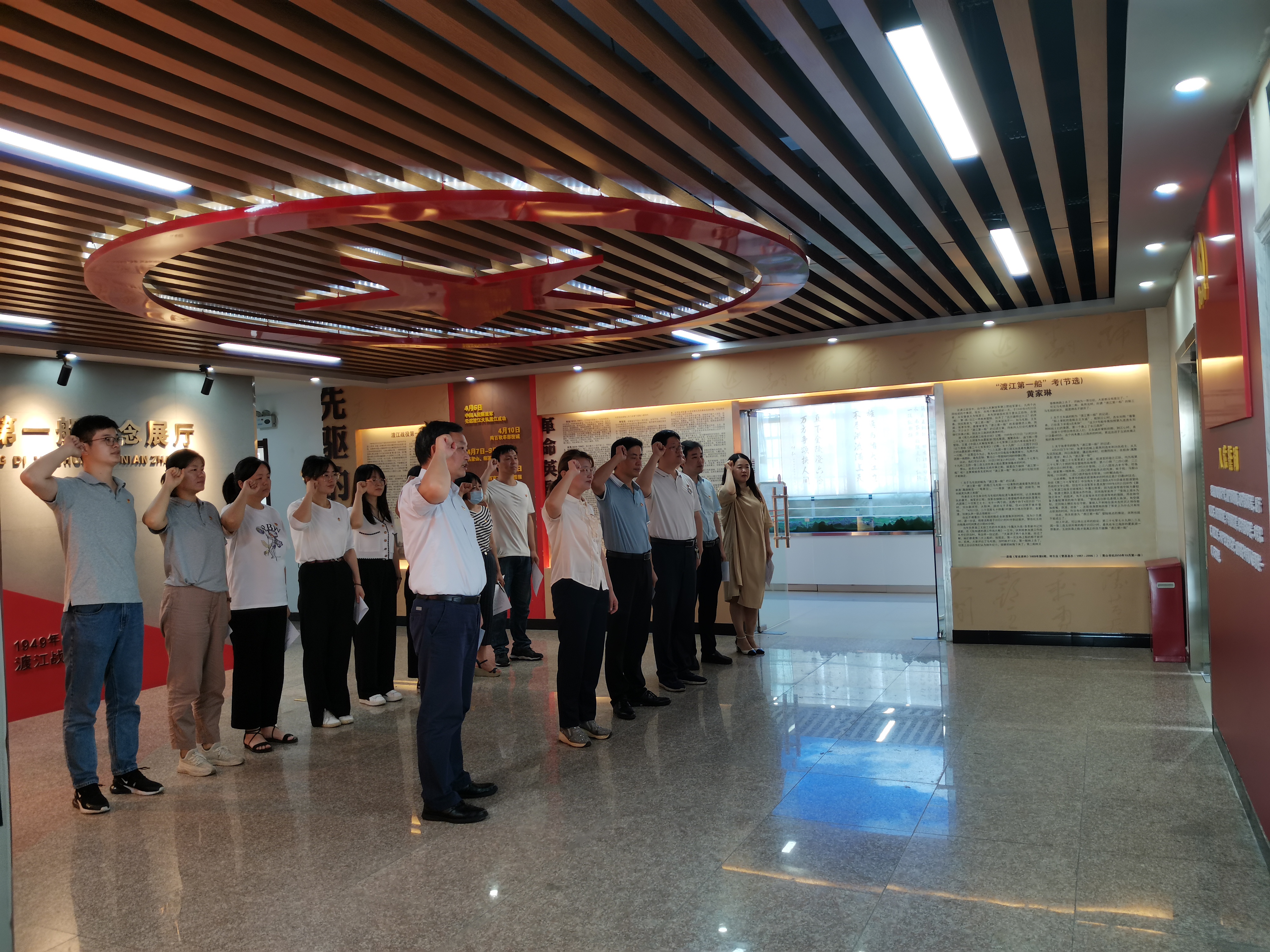 全体老师共同瞻仰了位于弋江区保定街道团洲村夏家湖“百万雄师渡江第一船登陆点”,认真学习了一九四九年四月二十日,第二十七军七十九师二三五团一营三连二排五班率先在夏家湖登陆的伟大历史时刻,石碑上鲜红的大字仿佛在无声地述说当年的铁血横渡,在场的老师在纪念碑前也纷纷追忆那些为新中国诞生而奋斗和献身的英雄先烈。纪念碑参观结束后,全体人员来到团洲村村部的渡江战役展厅继续学习,一幅幅珍贵、生动的历史图片、实物、影像再现了当年渡江战役的历史全貌,在解说员的带领下深刻感受那段壮烈非凡的历史。学习结束,邓英扣带领全体教师面向党旗举起右手重温入党誓词,现场共同诵读伟大建党精神。邓英扣要求全体人员要弘扬光荣传统、庚续红色血脉,为实现第二个百年目标继续奋斗。