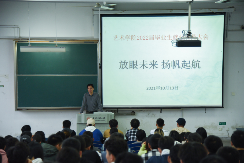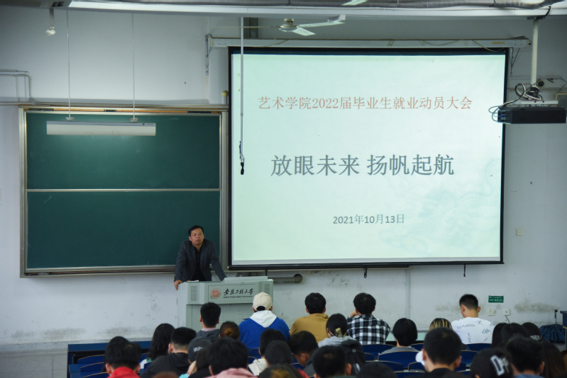 本网讯 为了进一步推进毕业生就业工作,帮助毕业生认清就业形势,熟悉就业流程,准确把握就业机会,10月13日下午,艺术学院在6教215召开毕业生就业动员大会。院党副委书记胡家增、任家钱、毕业班辅导员及2022届毕业生参加此次会议。