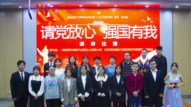 本网讯 为进一步学习贯彻习近平总书记“七一”重要讲话精神,引导广大青年团员“学党史 强信念 跟党走”,机械工程学院(人工智能学院)于10月15日晚7:00在5J117举办“请党放心,强国有我”主题演讲比赛决赛。校工会主席张寅红、组织部副部长章靖平、校团委甘曼宁以及学院党委副书记李文江、何志恒应邀担任此次赛的评委。