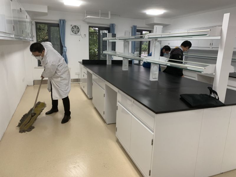 活动中,各党支部自觉分工、默契配合,党员充分发挥先锋模范作用,展现了不怕脏、不怕累,勇挑重担的良好精神风貌。大家清扫地面、墙面、清洁座椅,经过两个小时的认真清理,实验室干净整洁、焕然一新。