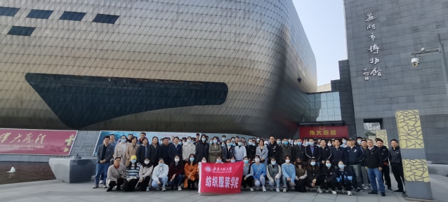 本网讯 为深入学习贯彻习近平总书记在庆祝中国共产党成立100周年大会上的重要讲话精神,回顾党的光辉历史,坚定理想信念,纺织服装学院党委充分运用本地红色资源,10月23日上午,组织全体教职工和学生党员赴市博物馆参观“伟大历程——芜湖市庆祝中国共产党成立100周年”主题展馆,开展“追寻百年党史,赓续红色血脉”主题党日活动。