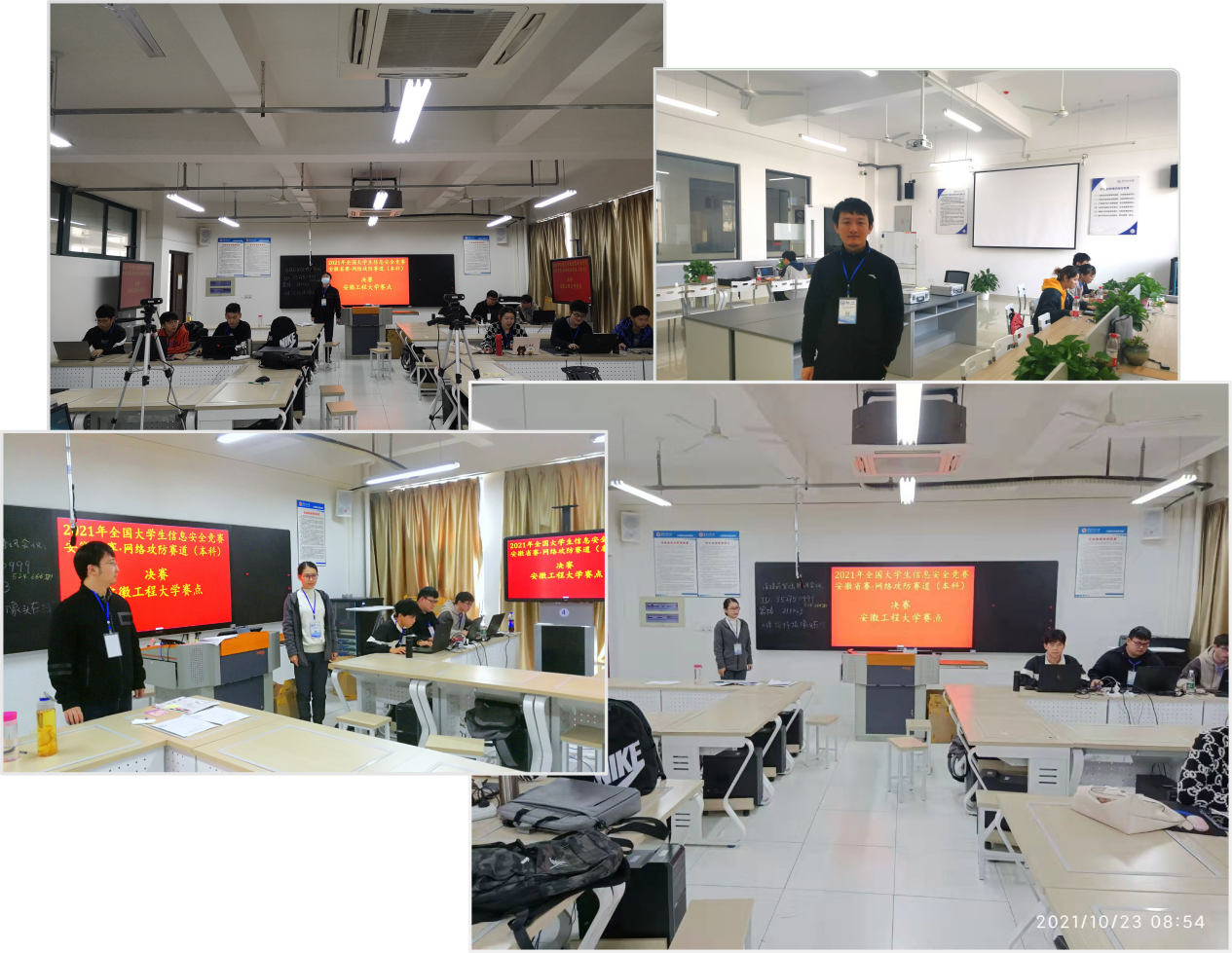 应竞赛要求,由计算机与信息学院设立安徽工程大学赛点,竞赛场地设在C626实验室,我校计算机与信息学院包象琳老师和安徽信息工程学院伍岳老师担任安徽工程大学赛点的监考教师,我校徐晓峰老师则前往安徽信息工程学院赛点进行监考,包象琳老师同时作为竞赛联络教师负责双方监考老师和巡考老师的联络。