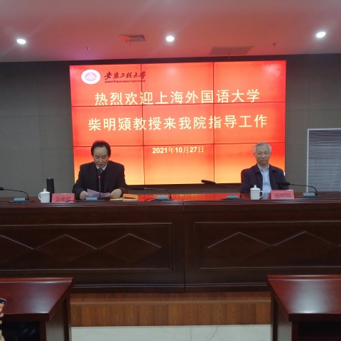 本网讯 10月27日,全国翻译专业学位研究生教育指导委员会委员,上海外国语大学教授、博士生导师柴明熲教授应邀来外国语学院指导工作。柴教授是上海外国语大学高级翻译学院的创始人,国务院学位委员会第一、二、三届全国翻译专业学位研究生教育指导委员会委员、教育部全国高校翻译专业教学协作组副组长、上海市翻译专业学位研究生教育指导委员会主任委员、中国翻译协会口译专业委员会副主任委员、中国翻译协会教学与科研专业委员会委员、中国比较文学学会全国翻译研究会常务副会长兼秘书长、上海市文联委员,国家社科和教育部研究生教育发展中心审议专家。
