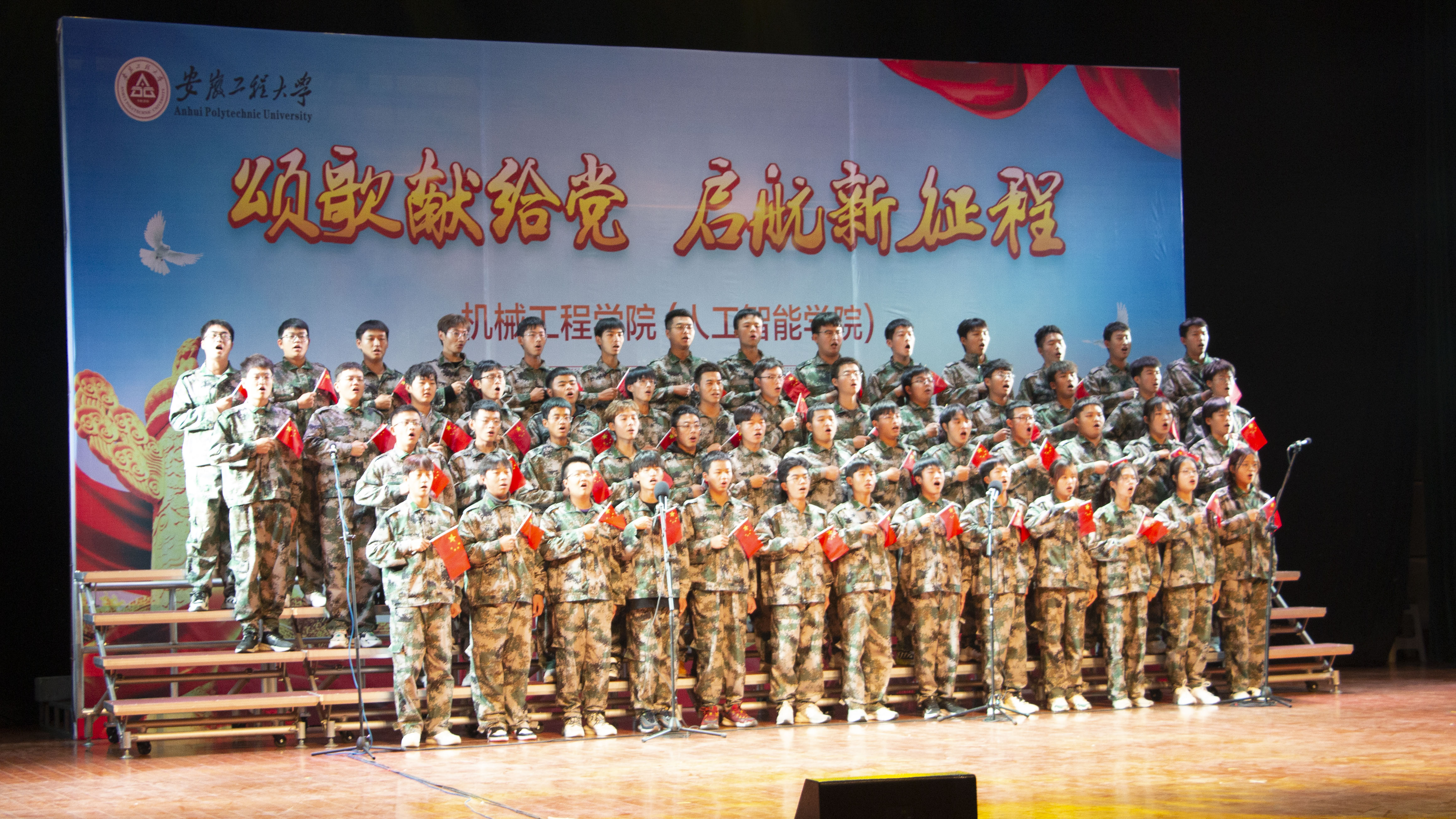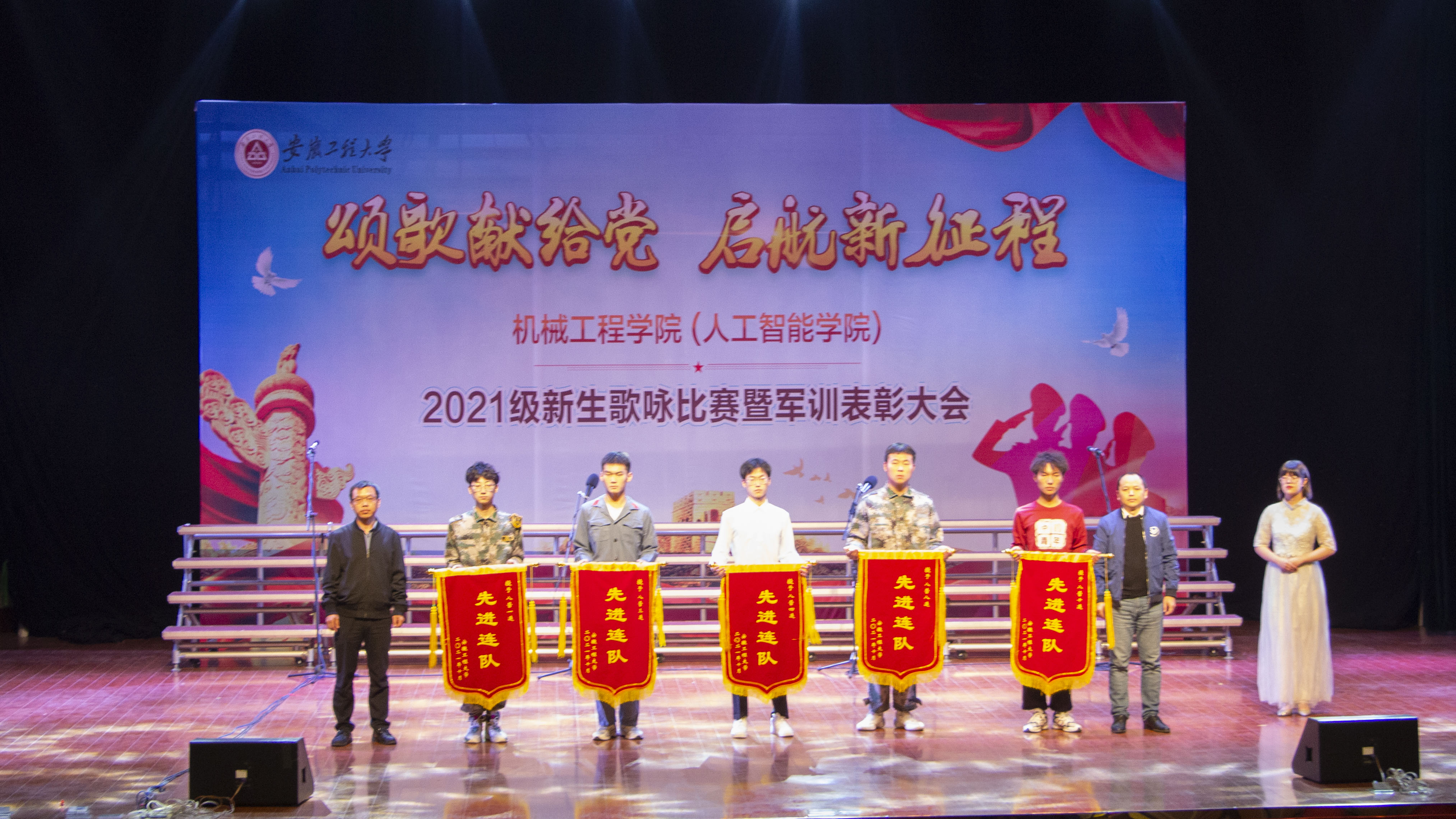 本网讯 为庆祝中国共产党成立一百周年,推进党史学习教育深入开展,促进广大青年学生德智体美劳全面发展,激发爱党爱国爱校热情,10月29日晚,机械工程学院(人工智能学院)在师生活动中心举办2021级新生歌咏比赛暨军训先进个人表彰大会。学院邀请陈希、祝军、甘曼宁、奚琳四位老师担任评委,校学生处副处长刘伟,校团委副书记蔡金平,学院党委副书记李文江和何志恒,新生辅导员及部分新生军训教官莅临比赛现场,学院800多名2021级新生倾情表演。