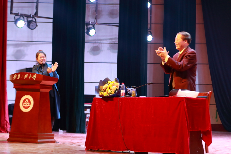 苏自林以“学史明理、学史增信、学史崇德、学史力行,浅谈抗美援朝、援越之战”为题,讲述了抗美援朝、援越等援外战役,就首战两水洞、激战云山城、会战清川江、鏖战长津湖、血战上甘岭等战役及抗美援朝纪念日的由来进行详细介绍。他着重强调了中国志愿军的精神,尽管美军装备精良、兵力雄厚,但中国志愿军不惧严寒、不畏生死、不恐强敌,以坚强的意志打压美军士气,最终赢得了抗美援朝战争伟大胜利。苏老在演讲过程中向大家展示了抗美援越纪念章及纪念证书,在熠熠生辉的勋章中波澜壮阔的历史情景浮现,证书上“独立、自由、幸福”六个字深深感动着台下众多生活在和平新时代的青年学生们。随后,苏老着重从援越抗美是无产阶级国际主义义务、是反帝反修斗争的需要、是防止“唇亡齿寒”的历史教训、是“同志加兄弟”的关系使然、是两国领导人深情厚谊的体现等五个方面讲述了中国出兵抗美援越的原因,同时也分享了抗美援越期间发生的一些故事。苏老战士演讲结束后,数理与金融学院的学生献上鲜花,深表尊敬与钦佩。