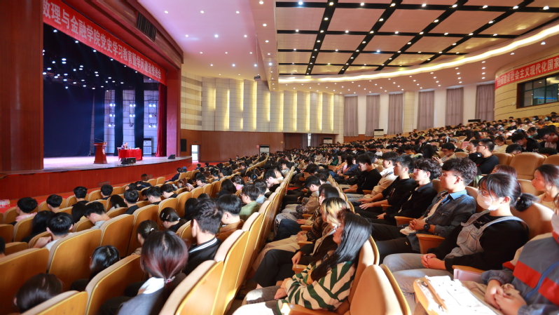 本网讯 2021年11月3日下午,安徽工程大学数理与金融学院在校师生活动中心顺利召开党史学习教育报告会暨学风建设推进会。援越抗美、援老抗美战争亲历者、原应用数理系党总支书记苏自林为全体师生作专题报告,学院全体教师、研究生和本科生共1100余人聆听报告会。报告会由院党委副书记王燕主持。