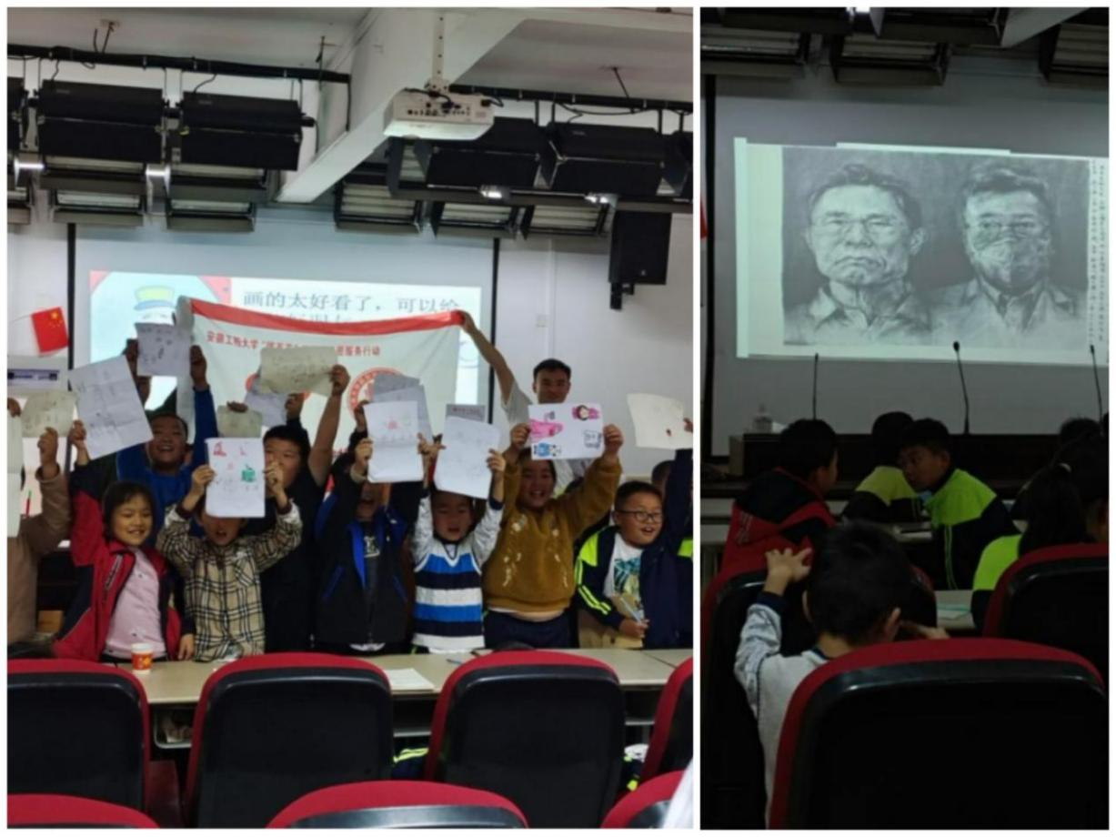 活动在孩子们的欢呼中正式开始。本次活动分为三个部分:美术课、音乐课、户外活动。美术课上,志愿者们教小孩子画简笔画,起初孩子们有些无从下笔,但在志愿者的耐心教导下,最终都顺利开始了自己的创作。美术课的最后,志愿者为孩子们介绍了值得我们敬重的英雄钟南山院士。