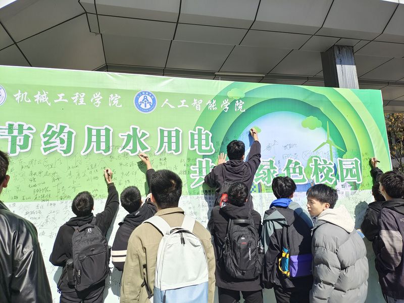本次主题党日活动以倡导绿色低碳、健康环保的生活方式,节约用电用水、减少碳排放,可持续发展要求的绿色出行等知识宣讲展开,倡导广大同学节约用电、安全用电,营造崇尚节约、绿色低碳的浓厚氛围,形成人人关心、时时注意的节约用水用电新风尚。支部党员同学率先在活动墙上签名,并表示节约水电、节约能源是每一位公民的社会责任,党员更要做好节水节电的倡导者、践行者、示范者。签名活动也吸引了新校区的广大同学踊跃参与,大家积极在签名墙上签名,郑重承诺自觉肩负起节约用水用电的责任,践行绿色低碳生活方式。