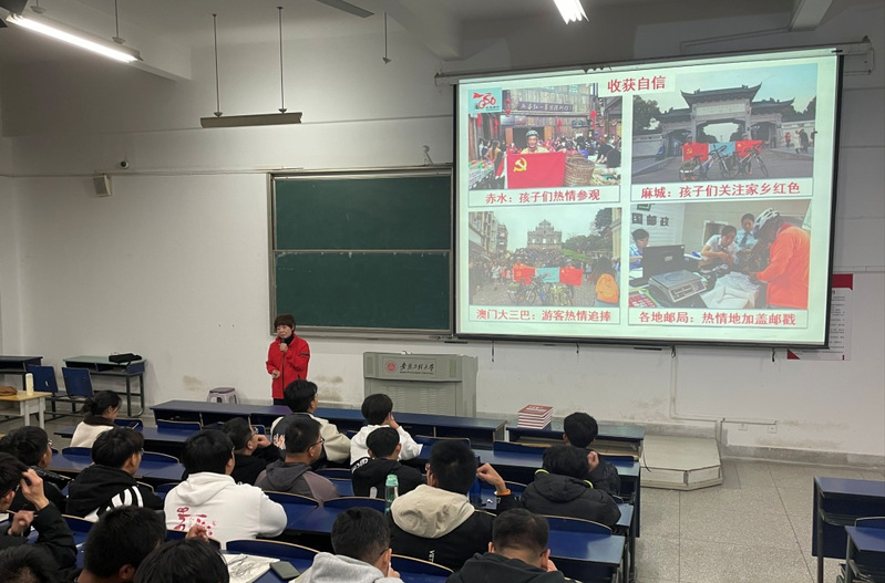 曹锦芬与同学们分享了红色骑行十万里征途中的故事,他们克服千难万险、骑遍红色河山、祭奠革命先烈、见证红色传承。她讲述了这些景点背后动人的红色故事,并鼓励同学们要坚定信念不言弃、勇于登攀不畏难。
