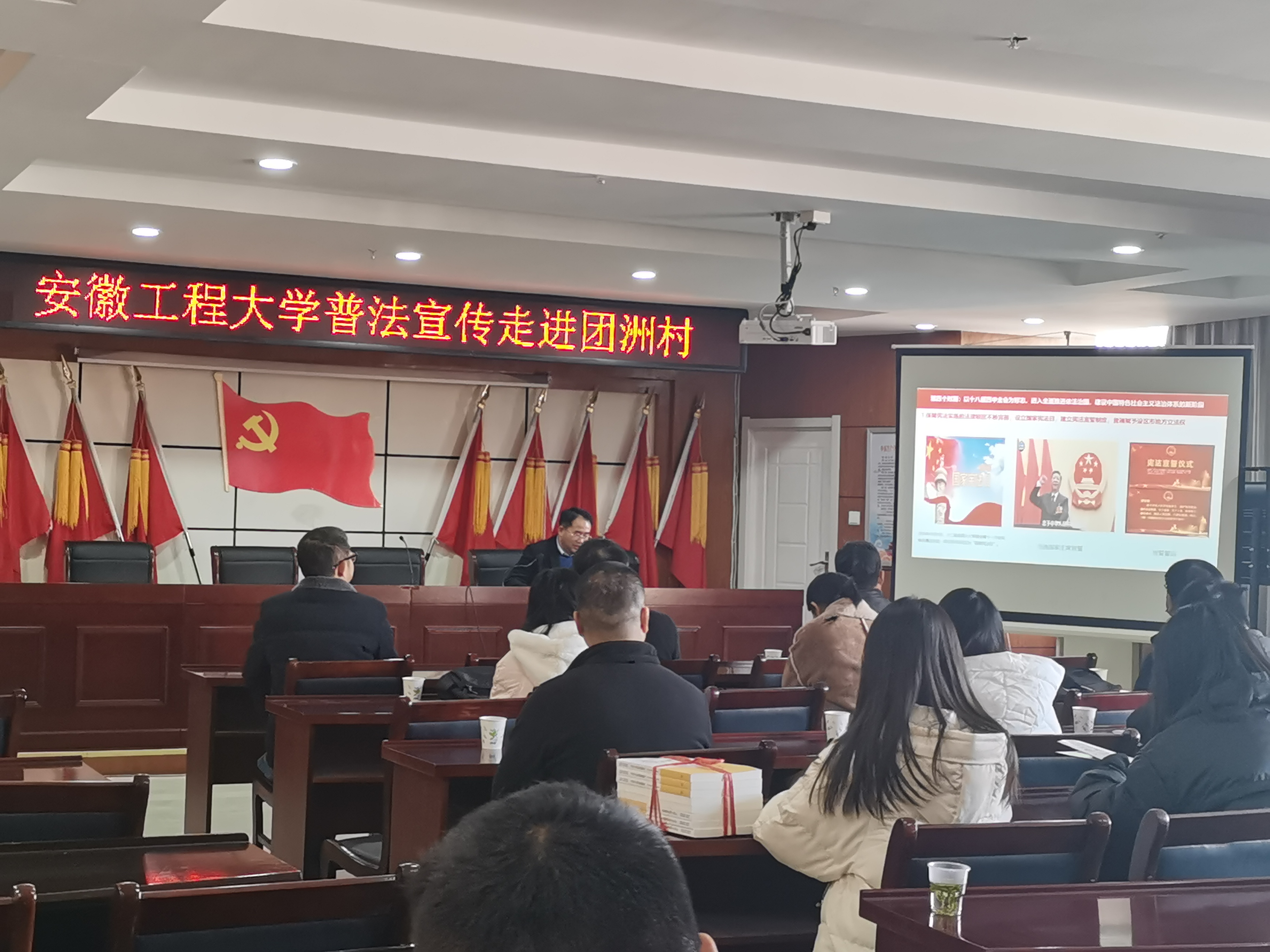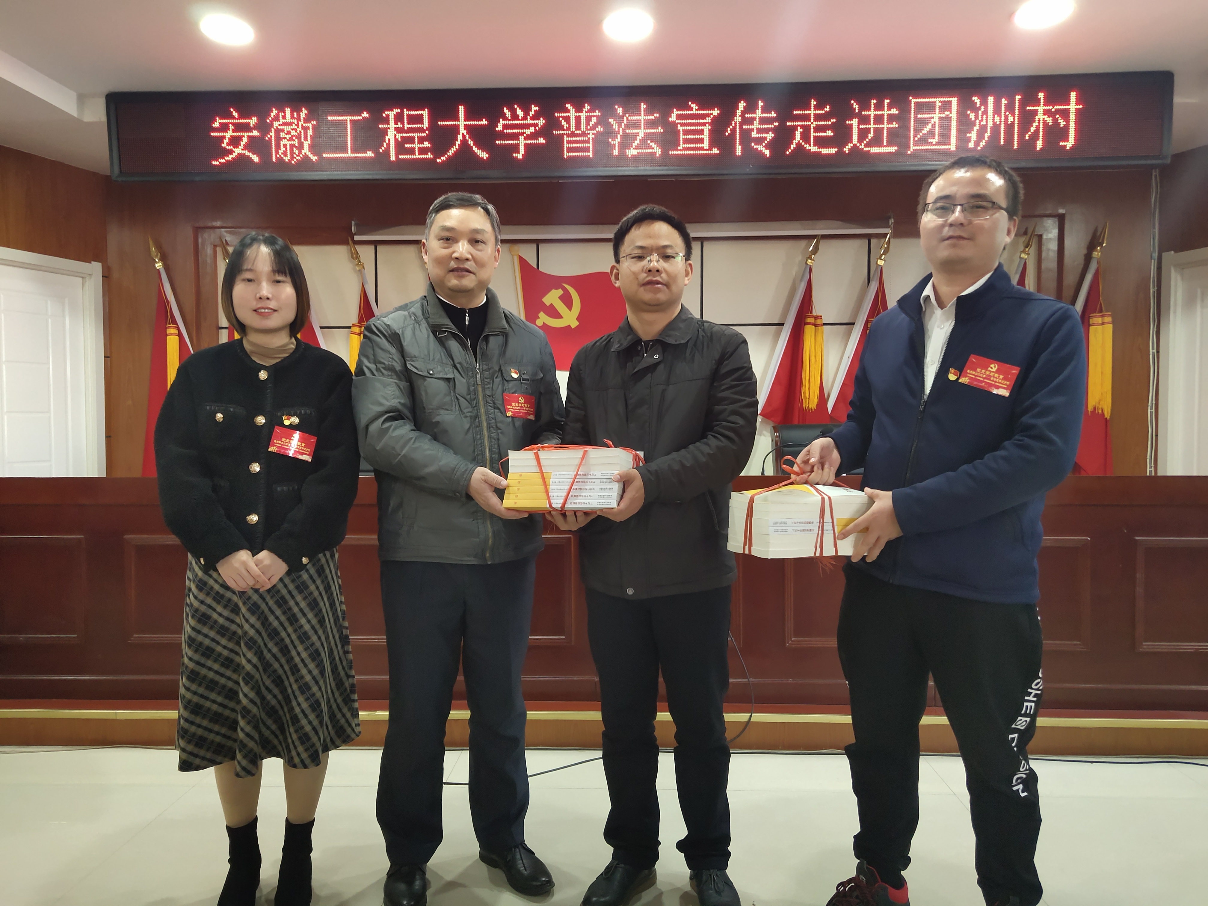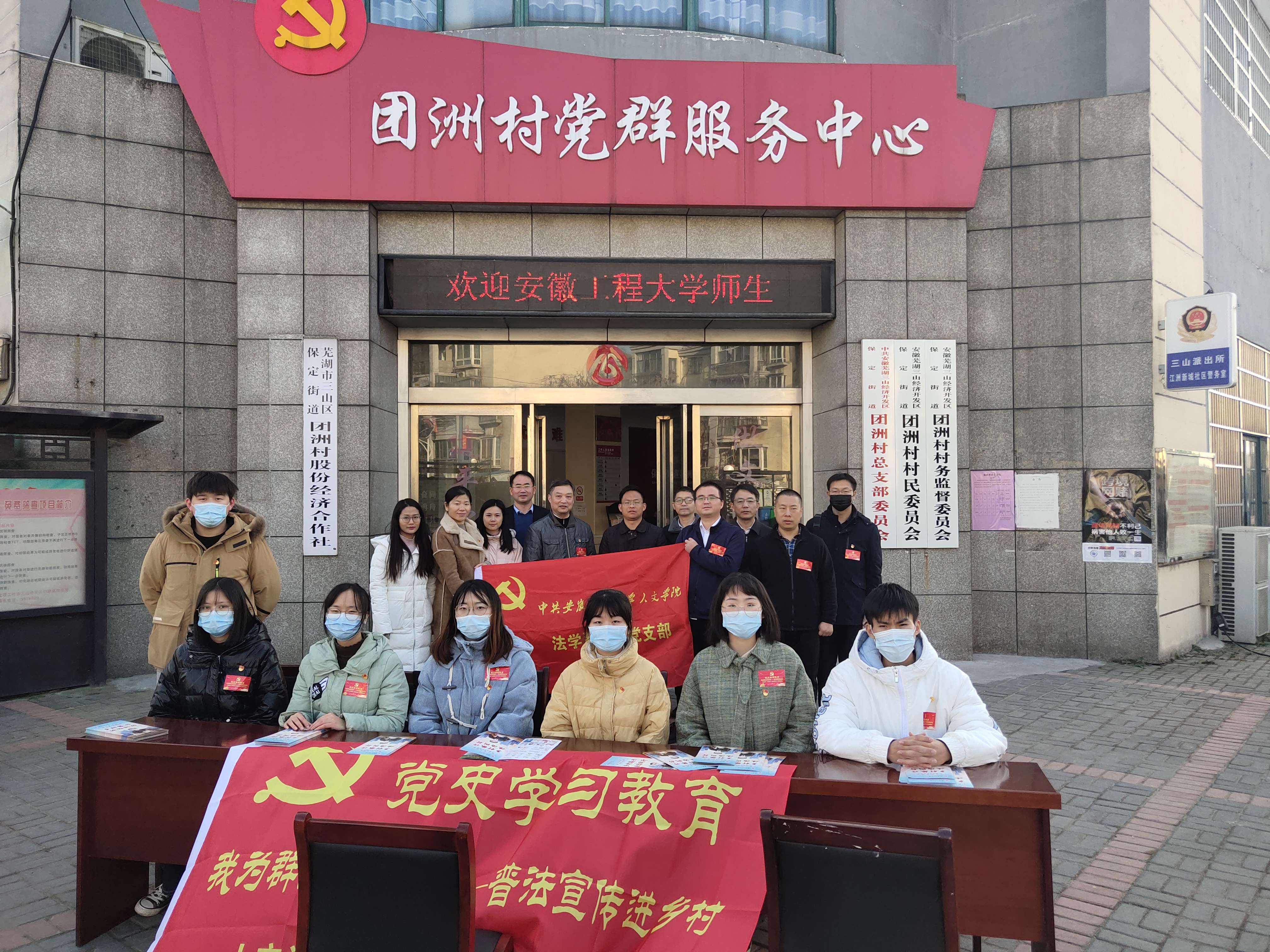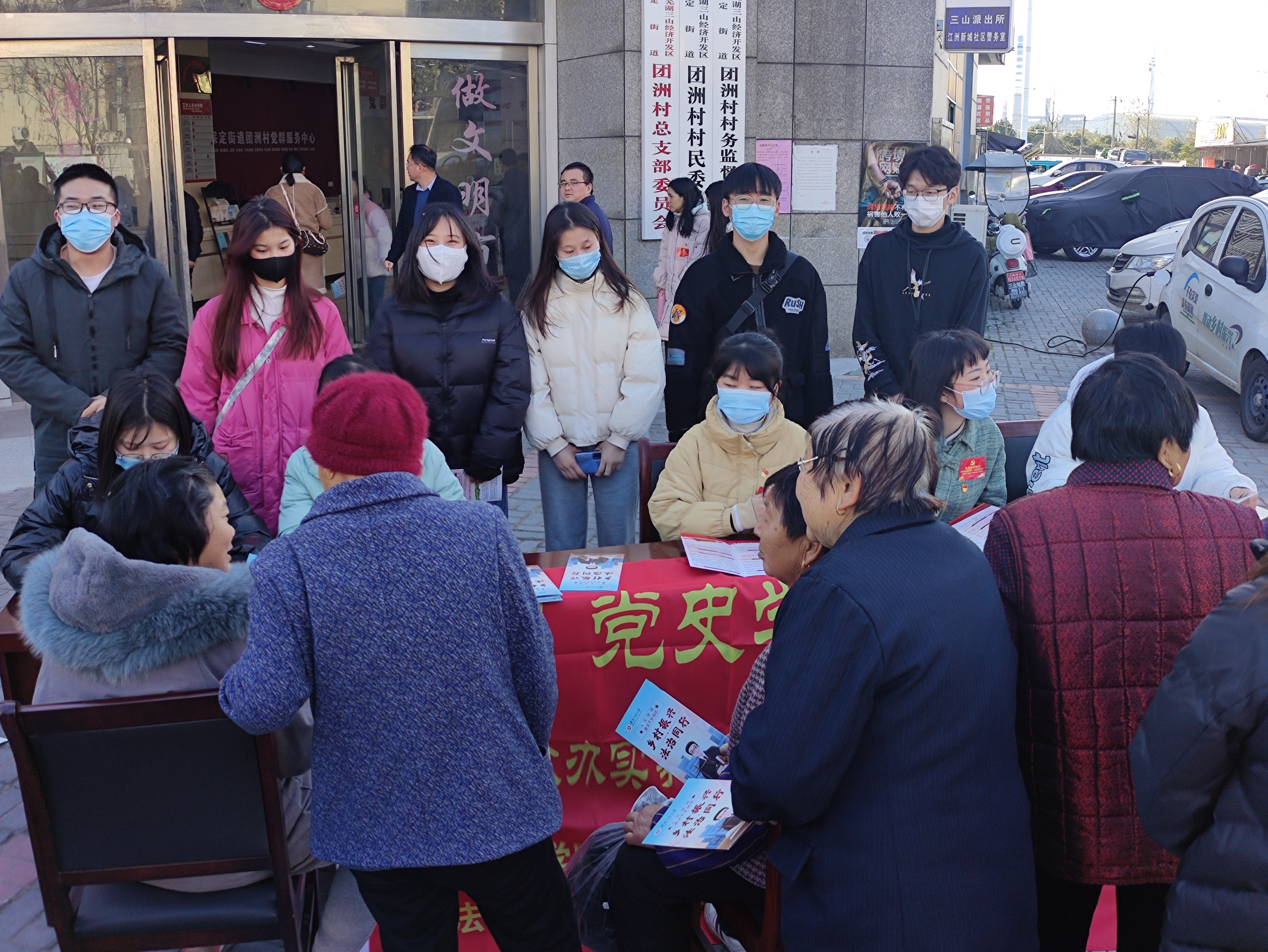 本网讯 2021年12月4日是我国第八个宪法日,设立宪法日的目的,是为了增强全社会的宪法意识,弘扬宪法精神,加强宪法实施,全面推进依法治国。12月1日,值此宪法日到来之际,为了宣传习近平法治思想,进行普法宣传,人文学院党委、法学系教师党支部、人文学院团委、法学专业学生党支部以及大学生法治宣传实践小分队前往芜湖市弋江区团洲村开展普法宣传活动,通过法律宣讲,发放宣传册,提供法律咨询等多种方式,传播法治思想,普及法律知识,加强高校和乡镇之间的沟通,促进习近平法治思想的落实,为夯实中华民族伟大复兴的法治基础贡献力量。
