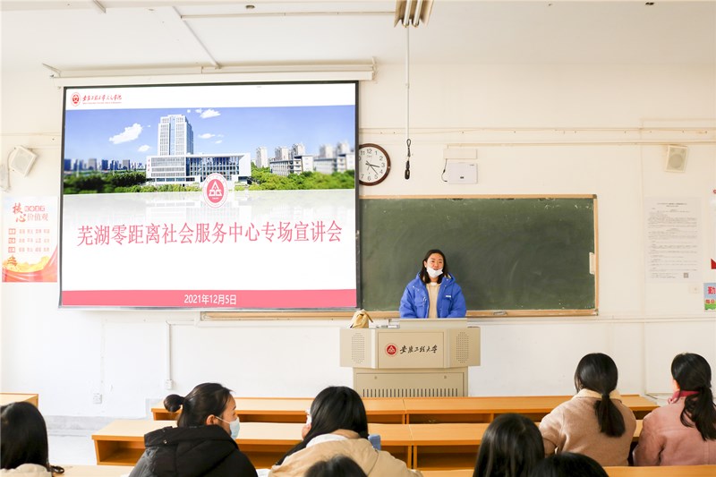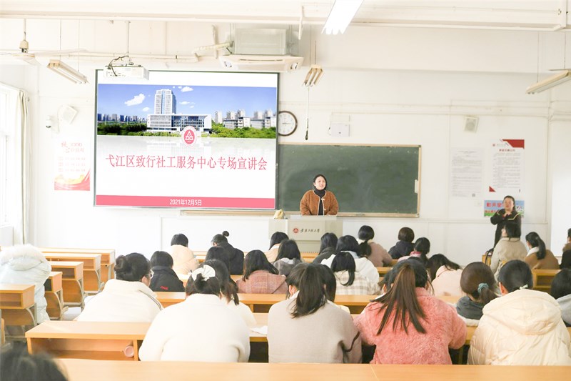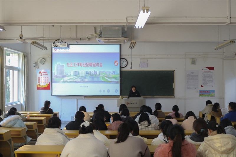 第一场招聘会,芜湖市启航社会工作发展中心主任牟柏利详细阐述了招聘要求、入职培养流程以及员工福利等。宣讲过程中,同学们纷纷拿笔记录下重要信息;第二场招聘会,芜湖零距离社会服务中心负责人讲述了招聘岗位和相应的要求,并激励大家“优秀使一切成为可能”;第三场招聘会,芜湖益群社会工作服务中心负责人储晓云通过精心制作的演示文稿向各位毕业生明确展示了薪资待遇等相关资讯;第四场招聘会,芜湖市致行社会工作服务中心负责人简要介绍了机构状况,并就同学们提出的疑问耐心做出解答。
