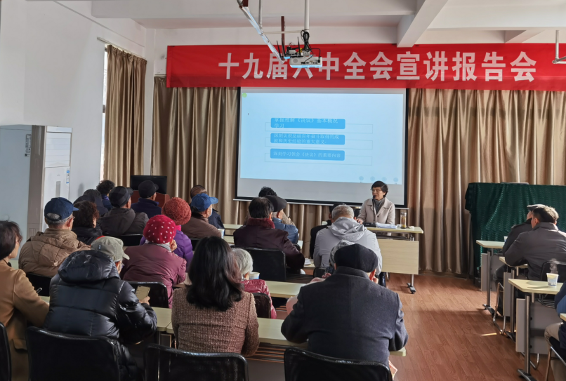 本网讯 12月8日,离退休党委在离退休活动中心党员活动室举办党的十九届六中全会宣讲报告会,学校党委副书记苏国红为离退休全体党员进行了宣讲。离退休党委副书记张寅红主持会议。