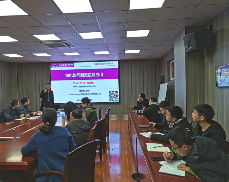 本网讯 12月8日下午,中国科学院上海硅酸盐研究所信息功能材料与器件研究中心主任王根水研究员、南京理工大学汪尧进教授应邀来校进行学术报告。报告会在B座216会议室举行,材料学院院长左如忠,副院长朱协彬、刘琪,青年教师及研究生参加了本次报告。报告会由左如忠主持。