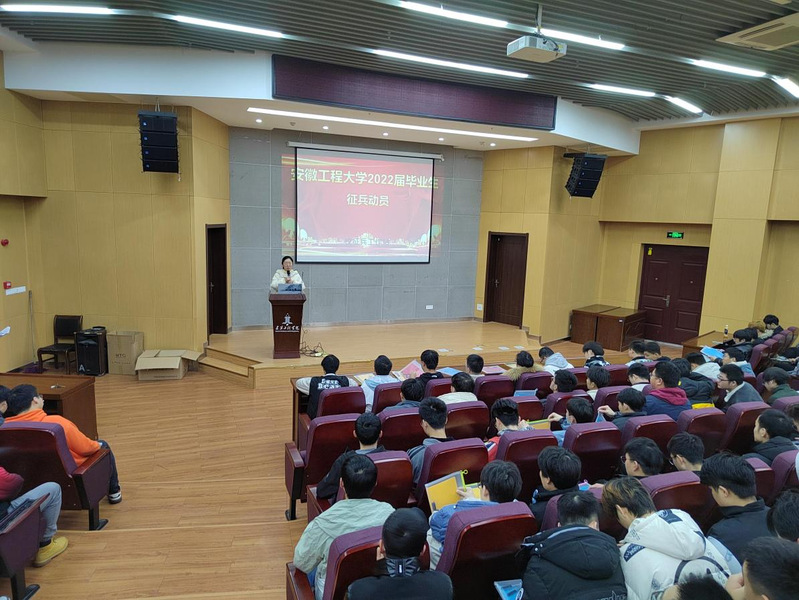 本网讯 为贯彻落实习近平强军思想,扎实做好2022届毕业生应征入伍工作,鼓励更多的优秀毕业生积极投身军营、保疆卫国。12月10日下午,建筑工程学院邀请校保卫处征兵工作站联系人赵成婧在C座三楼报告厅召开“征兵政策解读”宣讲会,全体在校毕业班男生参加此次宣讲会。
