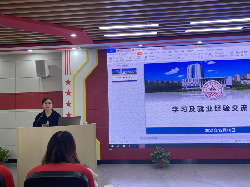 本网讯 12月10日下午,马克思主义学院在图书馆综合楼1410会议室组织召开研究生学习及就业经验交流会。会议邀请我院2013届毕业生、安徽机电职业技术学院思政课教师章庆林,我院2018届毕业生、安徽商贸职业技术学院思政课教师李方芹,我校2021年入职的电气工程学院辅导员贺佳云三位老师作学习及就业经验交流。马克思主义学院副院长李海涛、研究生秘书以及全体研究生参加此次交流会。