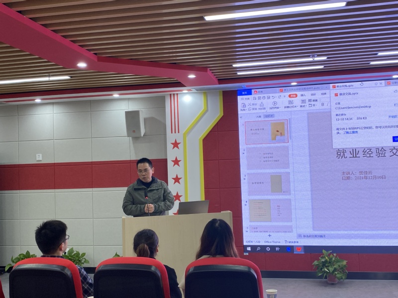 贺佳云老师通过分享自身就业经历,为同学们上了一堂生动的备考课。她结合自身备考辅导员、选调生、高中生物教师等经历,讲述了备考过程中的注意事项,她认为寒假是“超车”的关键期,希望毕业班同学们制定好寒假计划并坚持不懈为就业做好准备。