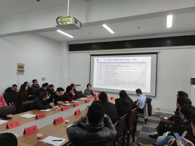 此次报告促进了我校与中国教育发展战略学会、中国人工智能学会互动交流,体现了我校依托学会指导,加强与高水平院校的AI专业交流,深入了解AI领域的行业动态,提升相关专业建设水平;帮助师生认识AI领域的发展脉络、未来发展方向以及AI专业的人才培养体系,提高了我校教师对AI新工科专业的认知层次,调动了师生参与人工智能领域研究的积极性。报告会邀请到长三角信息智能创新研究院常务副院长承孝敏,中国教育发展战略学会、人工智能与机器人教育专委会副秘书长常根景,芜湖职业技术学院信息与人工智能学院陶玉贵、唐贤传,芜湖钻石飞机制造有限公司、飞行部副部长顾有宝等校外嘉宾;人工智能学院副院长江本赤、全体教师和部分研究生聆听了报告会。