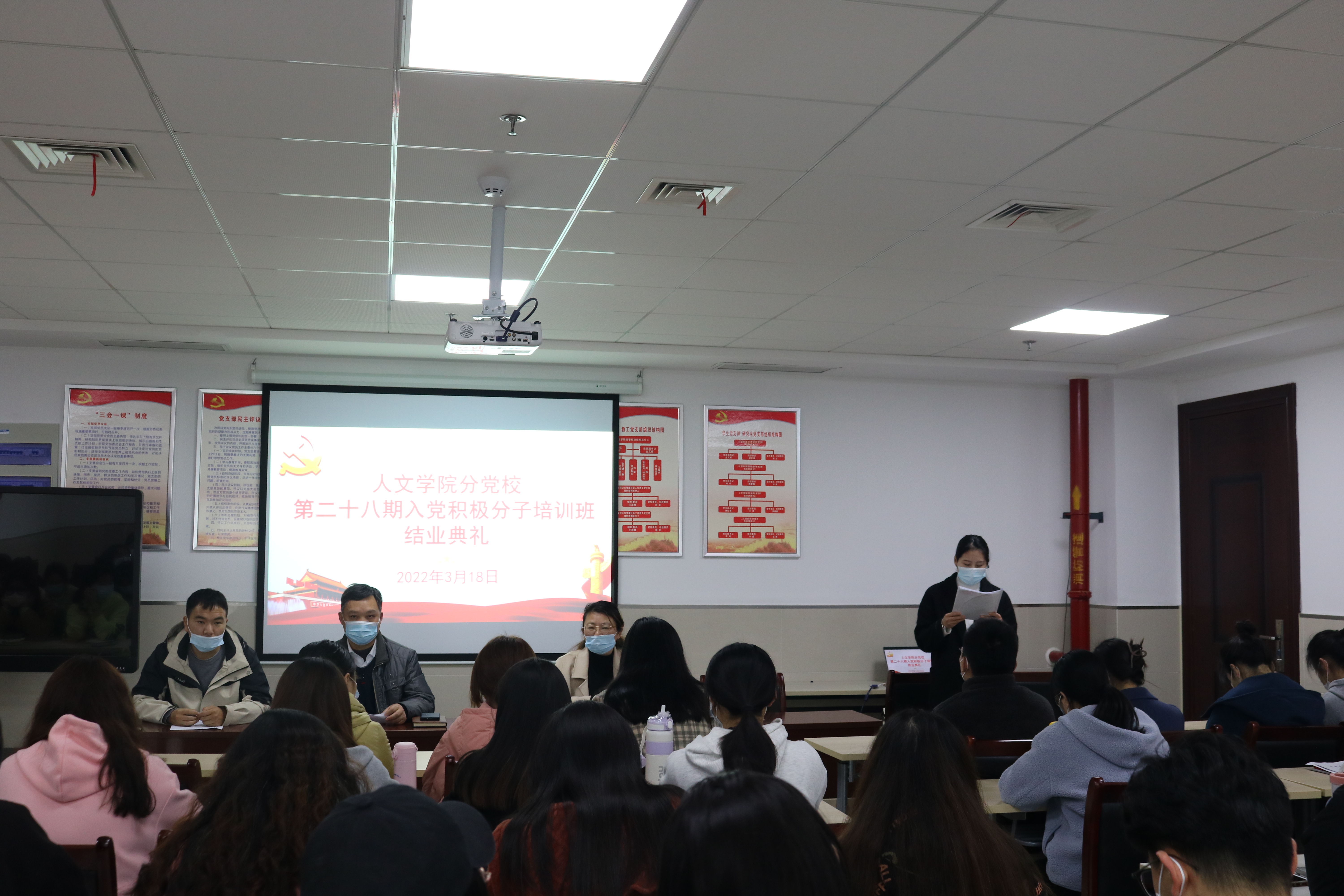 典礼在奏唱国际歌声中结束。学员们纷纷表示,经过四个月的党校学习,对党的基本理论和基本知识有了更深刻的认识,端正了入党动机,坚定了入党信念,在今后的生活学习中会严格要求自己,在行动上起到先锋模范的作用,争取早日加入中国共产党。