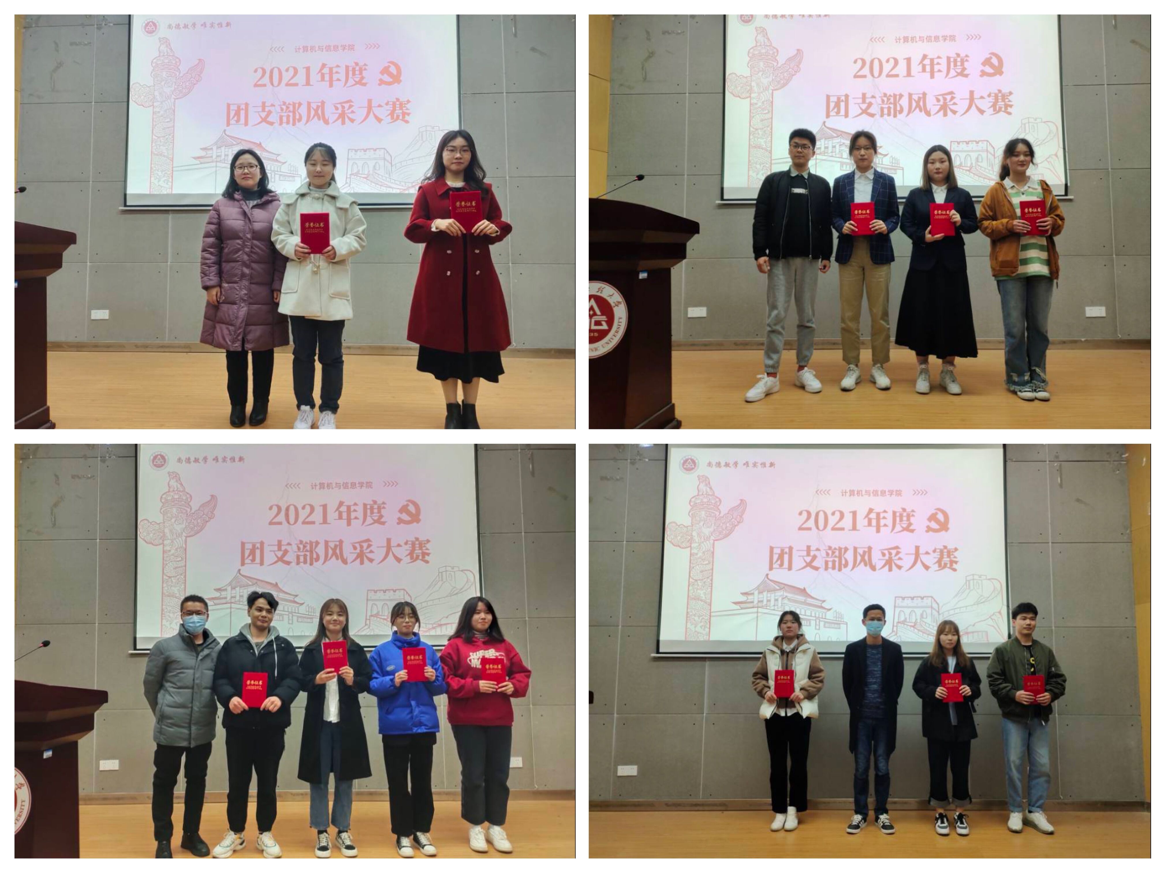 本网讯 3月20日下午,计算机与信息学院在实验楼C座5楼报告厅成功举办2021年度团支部风采大赛。经评选,软件191和计算机193获得比赛一等奖;物联网202、计算机202和软件202获二等奖;软件211、数据科学211、计算机212和物联网201获三等奖。本次大赛邀请到校团委宣传科副科长孙琳瑶、校团委兼职副书记王康、机械(人工智能)学院辅导员程雷、经济与管理学院辅导员吴兆克、计算机与信息学院辅导员王鸣鹃担任评委。院团委专兼职副书记和部分学生代表参加了活动。
