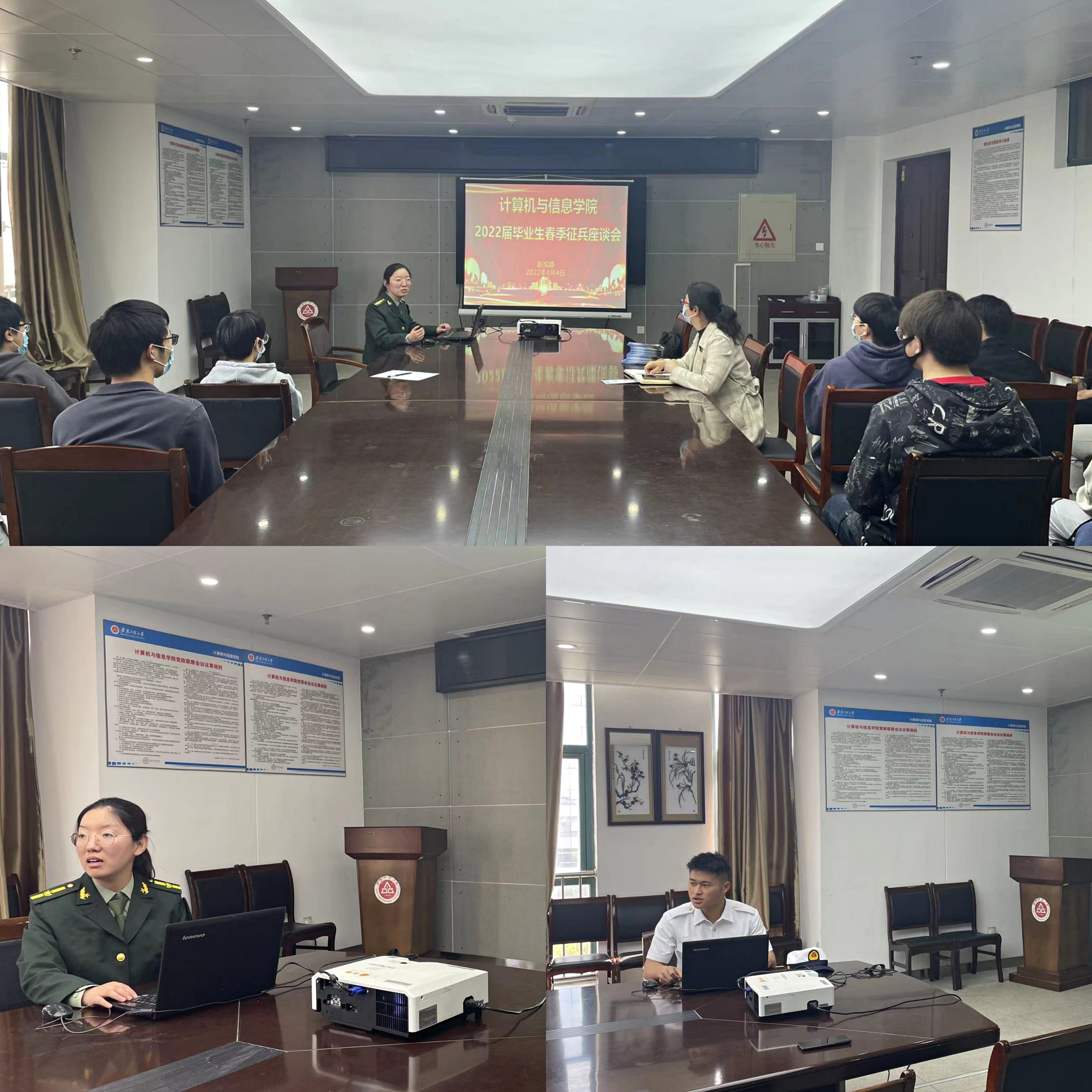 本网讯 为切实推进2022届毕业生就业创业工作,落实春季征兵和创业工作相关要求,实现应届毕业生高质量就业。4月4日,计算机与信息学院召开2022届毕业生春季征兵与就业创业座谈会。院党委副书记孙德茹、校征兵办赵成婧、院退休老教师强寿松、院征兵负责人王鸣鹃,2022届毕业生代表参加此次座谈。座谈会由王鸣鹃主持。