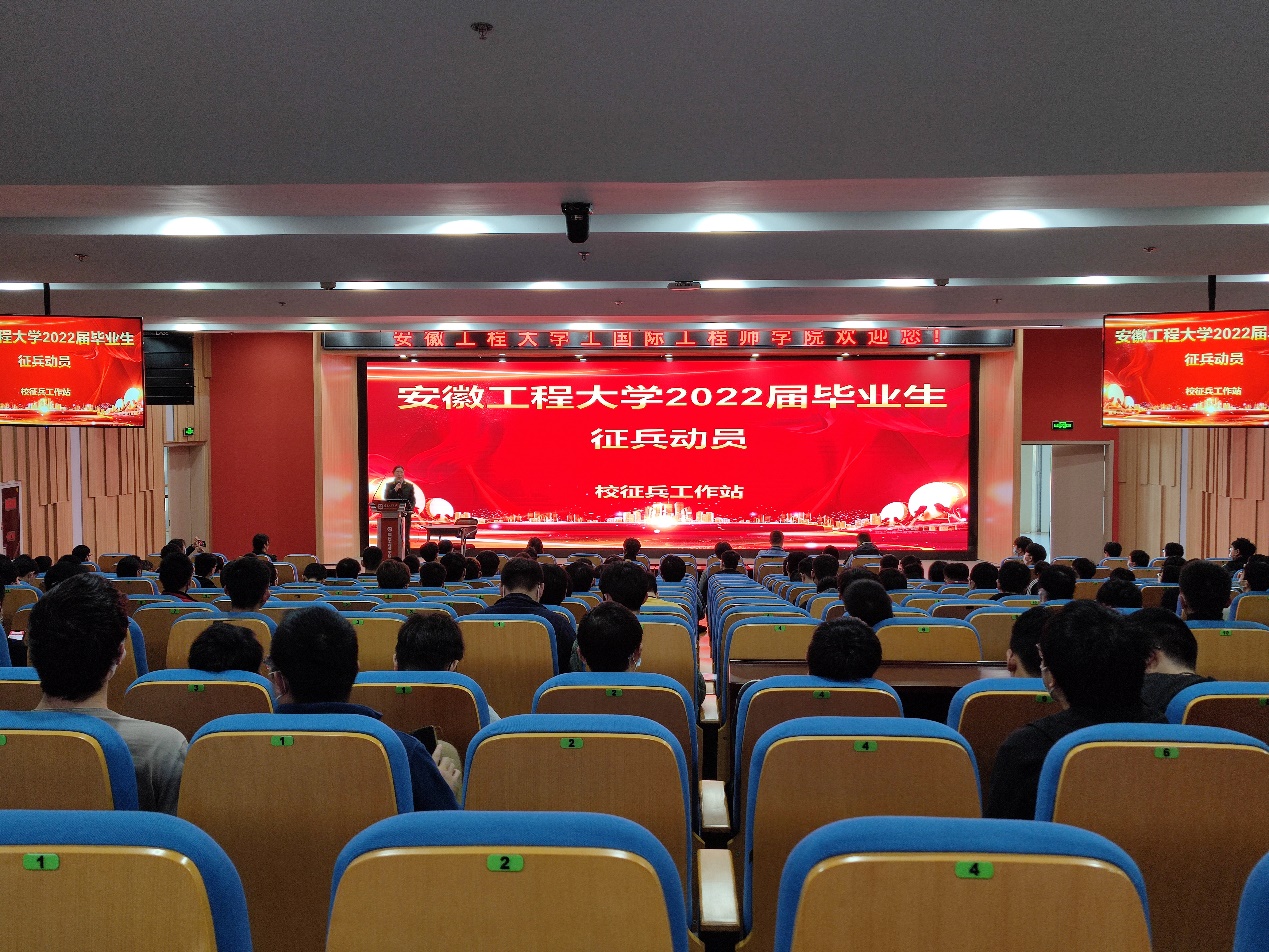 本网讯 为深入贯彻落实上级和学校征兵工作部署,为军队输送高素质人才,奋力推进国防和军队现代化建设。4月7日,机械工程学院(人工智能学院)在国际工程师学院校区报告厅开展2022届毕业生征兵宣讲会,学院党委副书记何志恒、李文江出席宣讲会,校征兵工作站赵成婧、学院毕业班辅导员、学院退役复学学生机制206班韩冰冰及毕业班学生参加宣讲会。宣讲会由学院征兵工作联络员从宏超主持。