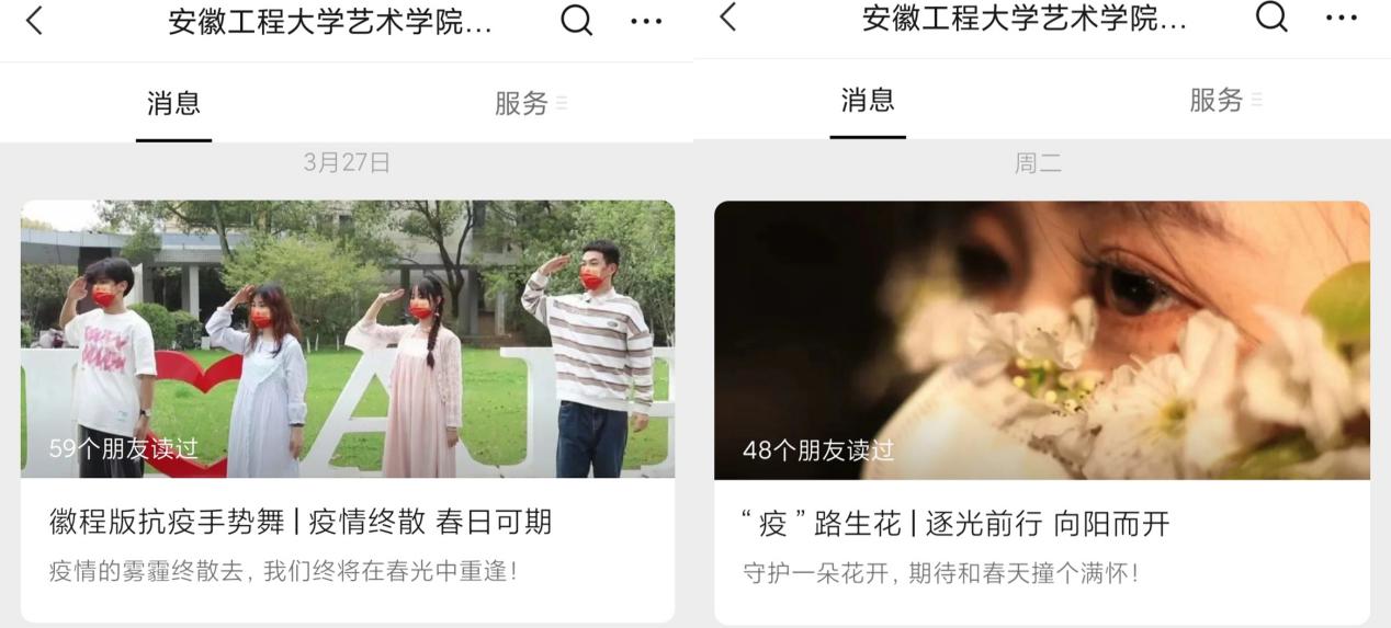 筑牢思想主阵地。坚持以正面宣传引领为重要抓手,持续加大宣传教育和舆论引导,多措并举丰富拓展宣传渠道,打造舆论阵地,筑牢疫情防控群众思想防线;充分发挥新媒体传播速度快、范围广的优势,利用新媒体平台,全方位向广大学生宣传疫情防控知识。通过开设“疫情防控”“防疫科普”等专题专栏,及时传达落实上级的宣传指令和通知;创新科普宣传举措,创作推出了《徽程版抗疫手势舞》《“疫”路生花》等防疫短视频,把疫情防控知识和政策措施,用大家喜闻乐见的方式传递到千家万户,引导大家准确掌握政策措施,理性应对疫情,消除恐慌心理,提高自我防疫意识。