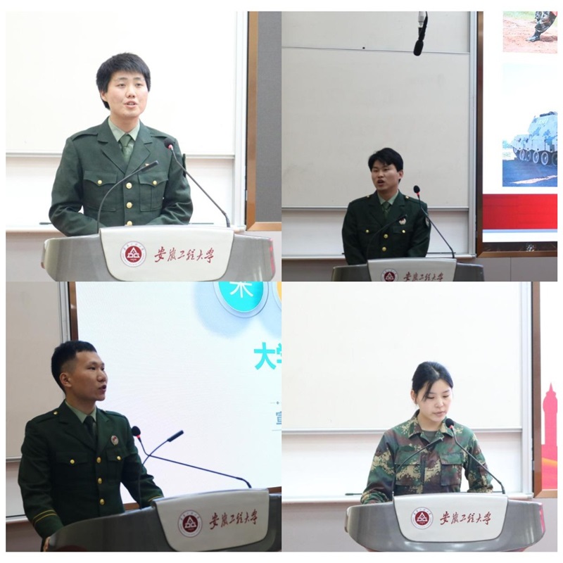 动员会在雄壮的国歌上中拉开帷幕。学院党委书记邓英扣老师作动员讲话,他强调,当代大学生应深入学习贯彻习近平强军思想,传承安徽红色精神血脉,响应祖国和军队的召唤,积极投身军营,报效国家,实现人生价值。校征兵工作站赵成婧老师就征兵政策作了详细解读。社工21级研究生孙阿刚、法学201夏萱、社工202刘雄、社工211李永志等四位退役研究生、大学生就各自的参军动机、军队经历、军旅生涯的成长分别作了交流发言。