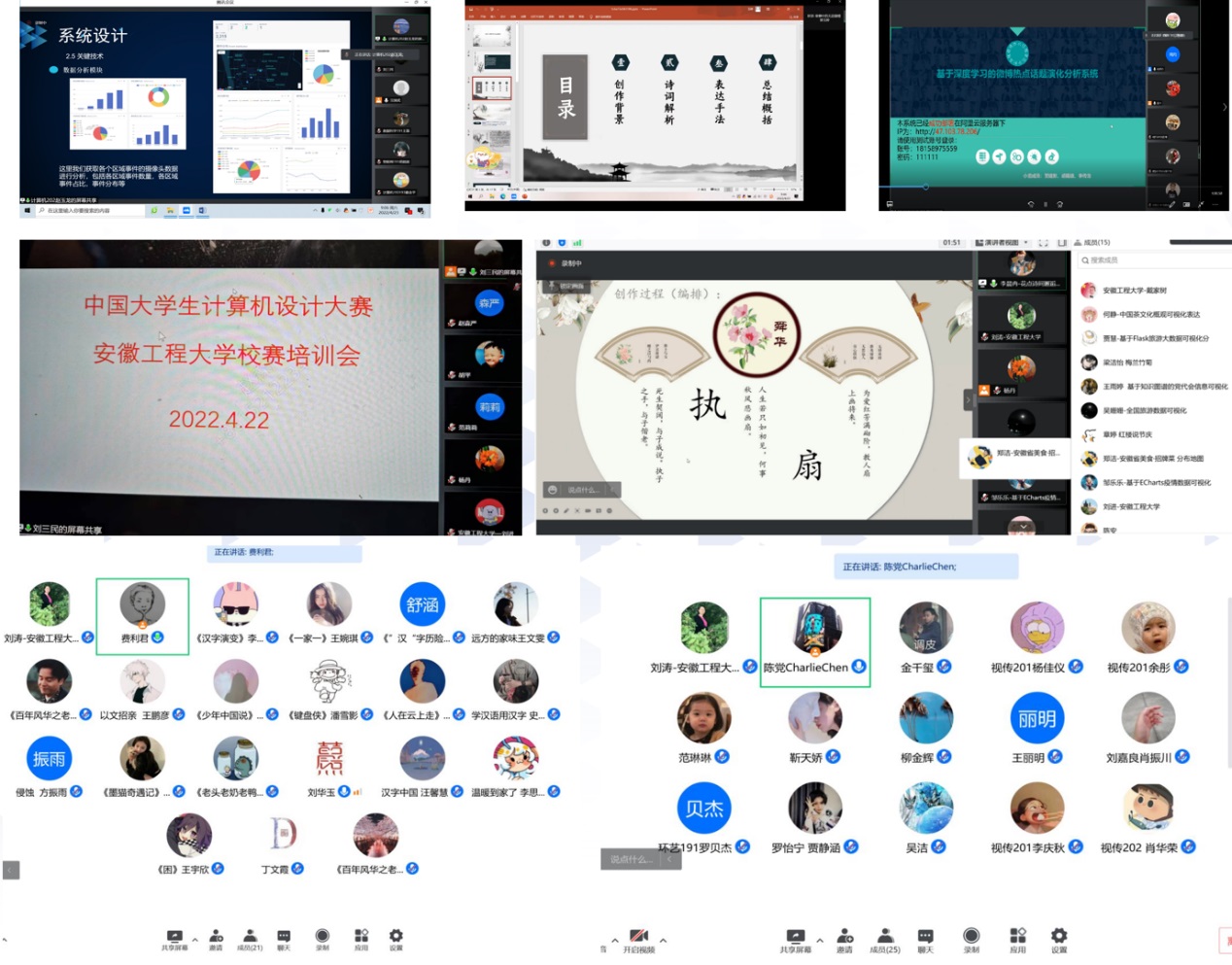 根据作品分类类别,本次比赛共设置六个线上比赛赛场,评审专家对每件作品名称、作品分类、技术实施和展示技巧等细节进行了点评,对于提高作品质量和学生的实践能力具有促进作用。计算机与信息学院也将继续做好服务,助力选拔出的优秀作品参加计算机设计大赛的安徽省赛和国赛,也希望被选拔出的作品选手继续打磨作品,在省赛中取得优异成绩,博得参加国赛的机会,并在国赛中为学校争光。