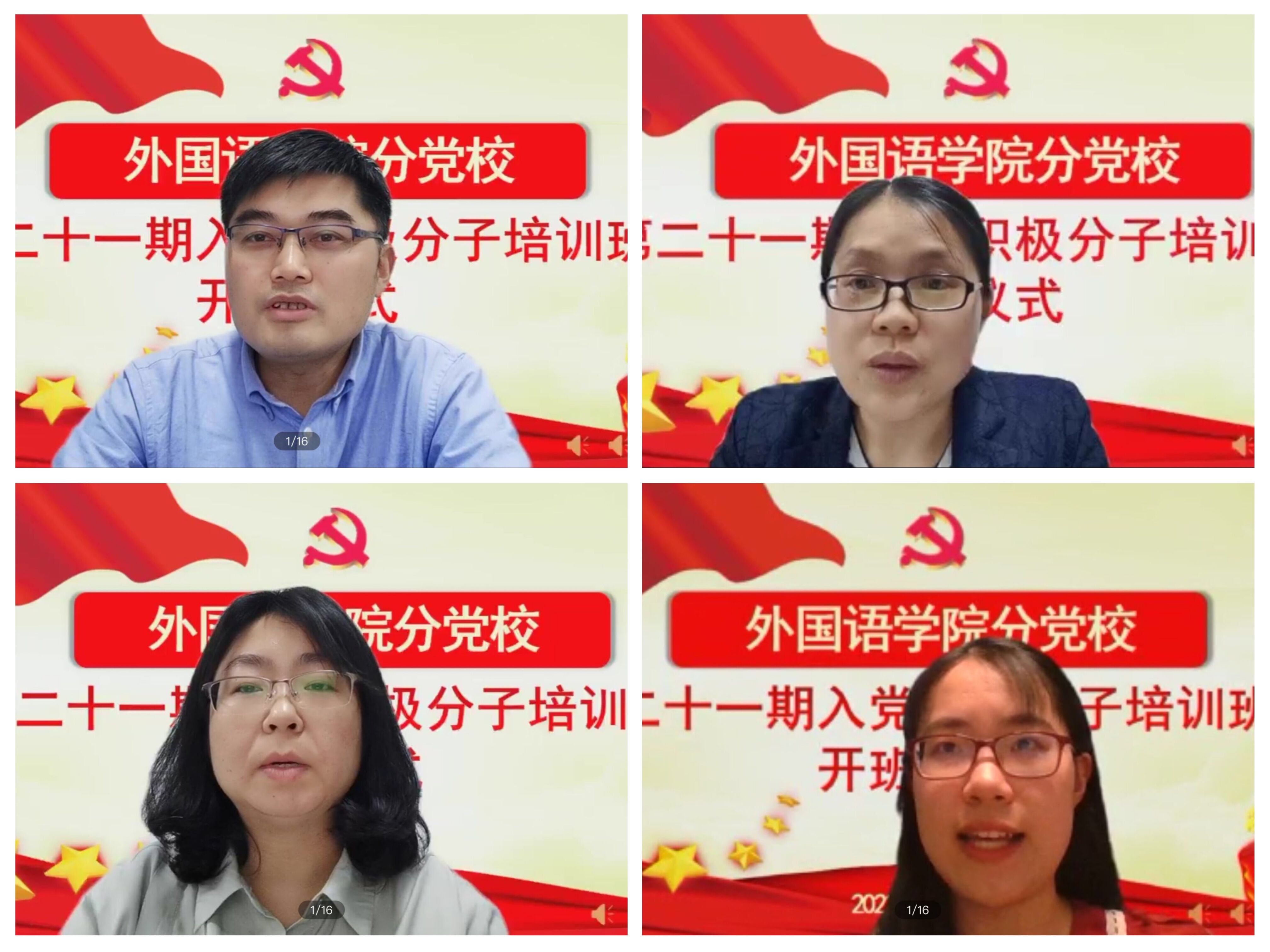 本网讯 近日,外国语学院分党校第二十一期入党积极分子培训班举行了线上开班仪式。院党委书记、分党校校长郑千里,院党委副书记李校林,组织员、学生党支部书记与培训班116名学员参加了开班仪式。开班仪式由培训班班主任张雅静主持。