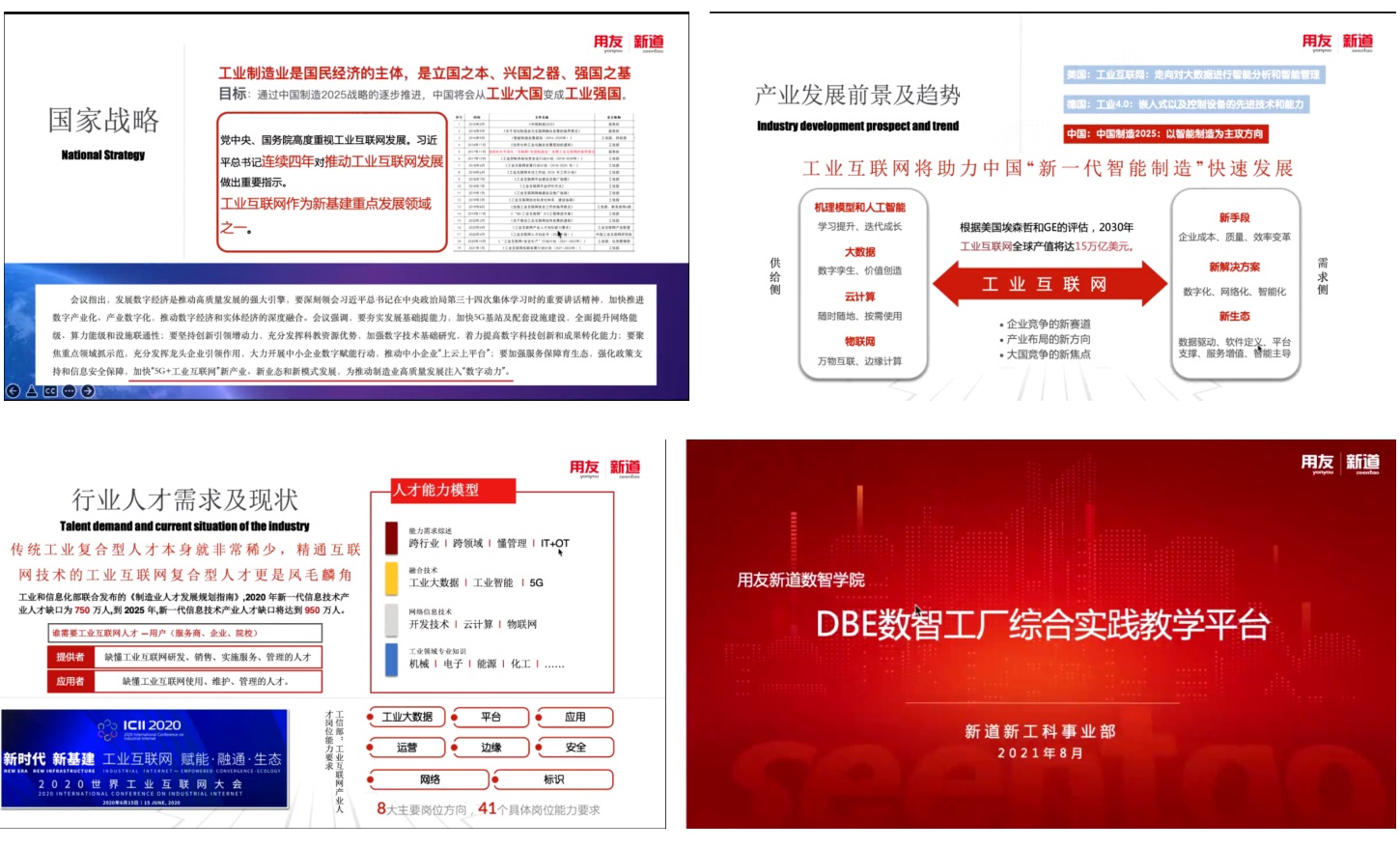 物联网工程系主任刘三民针对本次研讨的目的、背景进行了介绍,并向企业代表介绍了物联网工程专业发展现状。新道科技公司技术代表向参会教师展示主题为“工业互联网,赋能新工科”的研讨报告,详细说明了当前部分高校结合工业互联网技术开展教学活动的情况,实现人才培养。报告结束后,参会教师与企业代表以工业互联网国家战略为背景,交流产业发展前景及趋势,并就课程设置和工业互联网岗位能力要求进行了探讨。