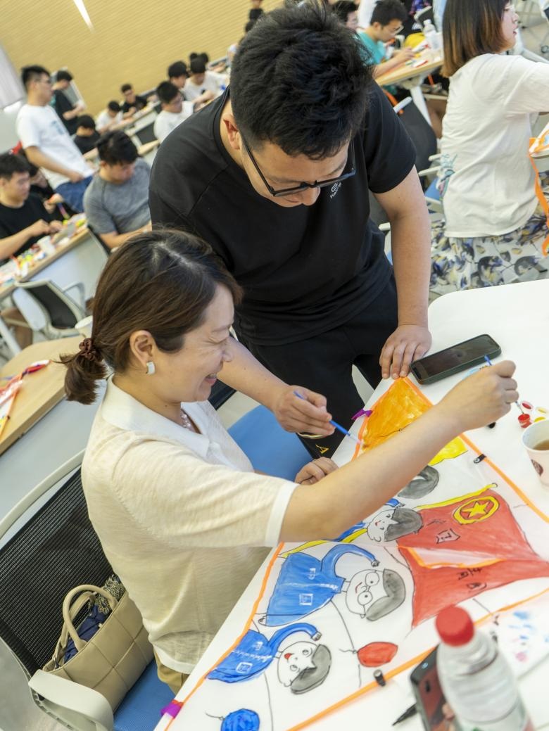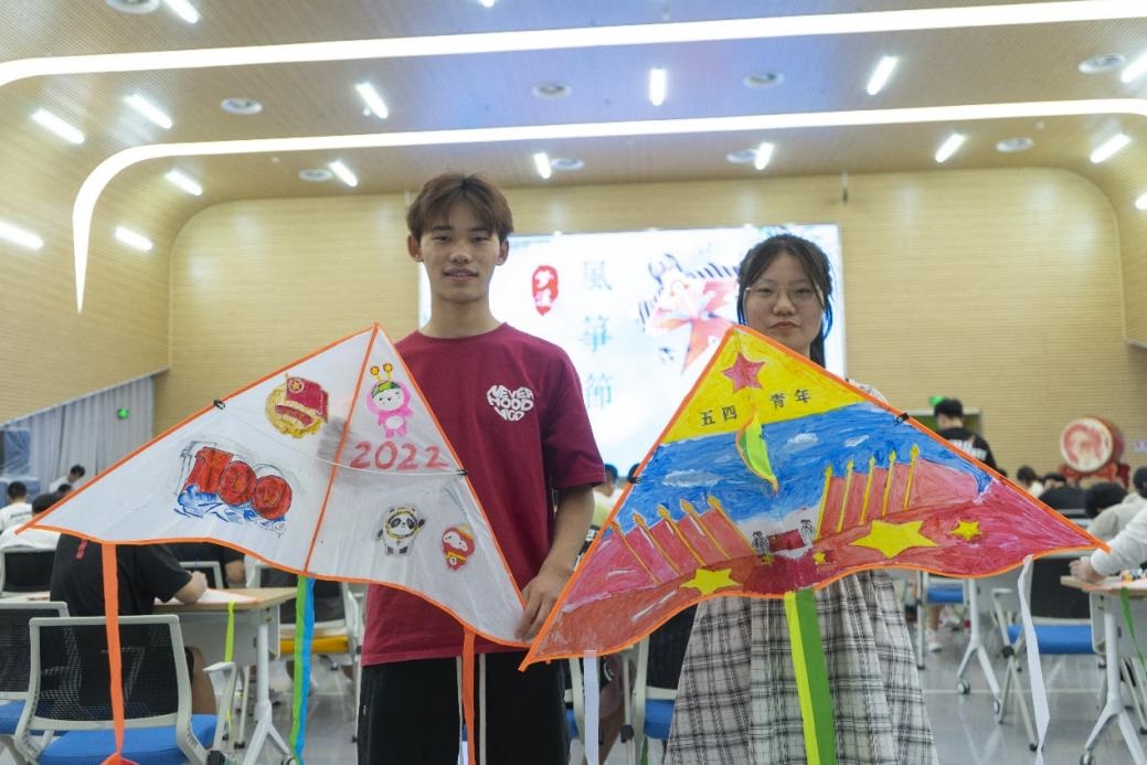 在梦溪才艺展示大厅,近百名同学聚在一起,围绕庆祝五四青年节、喜迎党的二十大、庆祝中国共产主义青年团成立一百周年成立100周年等主题;同学们在60支空白风筝上自由绘画创作,一笔一画、一色一调,一点不马虎,青年的想象力和创造力通过动手劳动的方式展现出来,更加凸显了重要意义。国际工程师学院校区管委会的老师们也来到现场“凑凑热闹”,与同学们一起用画笔勾勒、表达祝福。