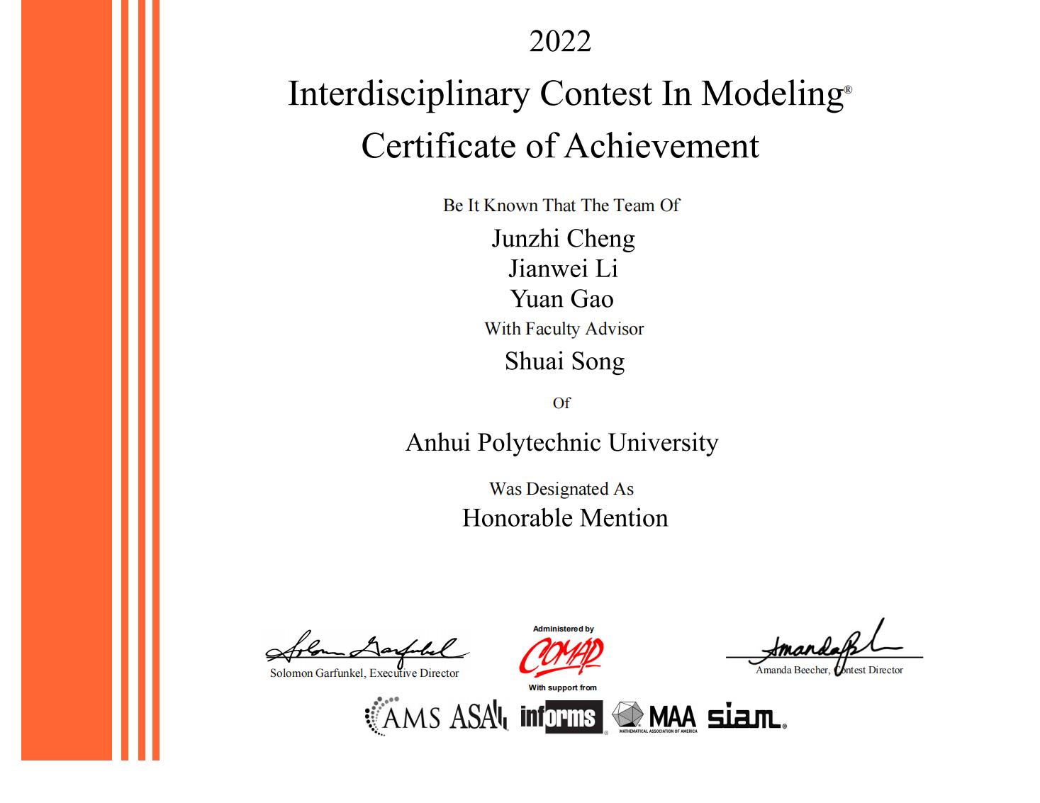 本网讯 近日,2022年美国大学生数学建模竞赛获奖名单公布,机械工程学院(人工智能学院)第一期菁英班组织8支队伍参加竞赛,经过师生不懈努力,从27205支参赛队伍中脱颖而出,实力获得二等奖3项。