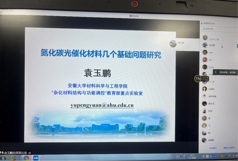 袁玉鹏作题为《氮化碳光催化材料几个基础问题研究》的报告,他针对氮化碳材料存在结晶度低、孤对电子跃迁的物理机制不清楚、以及制氢反应中负载Pt/g-CN界面处晶格不匹配等基础理论问题开展了一系列研究;建立了便捷、高效地制备高结晶度氮化碳材料的微波加热工艺,解决了高结晶氮化碳材料的制备难题;通过在Pt/g-CN肖特基中构建Pt-N化学键,利用化学键促进光生电荷的输运,进而提升光催化制氢性能。这些研究成果为开发高效氮化碳光催化材料提供了理论基础。