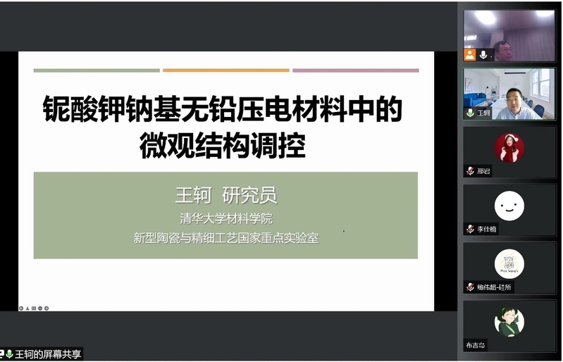 本场学术报告会由中国硅酸盐学会特种陶瓷分会与材料科学与工程学院共同举办,报告会由左如忠、北京科技大学白洋教授共同主持。报告会上,王珂作题为《铌酸钾钠基无铅压电材料中的微观结构调控》的学术报告,他介绍了铌酸钾钠无铅压电陶瓷的发展现状,并成功运用缺陷调控机理有效提升了铌酸钾钠陶瓷的电致应变,实现了机械品质因数与压电常数的协同优化,为水声声呐系统、医疗超声骨刀等大功率应用奠定技术基础。