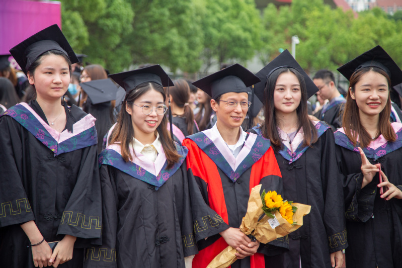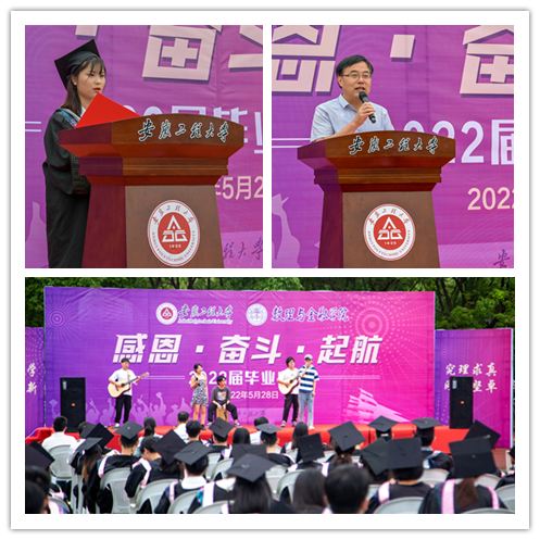典礼上,周毅仁作题为《与你们的约定》的致辞,他哽咽着和大家分享自己见证的18级的四年学习生活中努力进步的点点滴滴,深情寄语全体毕业生“青春心向党,阔步新时代”,秉承“尚德敏学 唯实惟新”的校训和“究理求真 刚毅坚卓”的院训,定能实现“大鹏一日同风起,扶摇直上九万里”的志向;他与2022届毕业生立下特别约定,向同学们发出了盛情邀请,常回“家”看看。张伟、史龙梅、蒋书云、程安琪四位老师与学生代表共同朗诵了2022届毕业生汪炜桀同学的原创诗歌《相信未来》,讲述了四年的师生情谊,既饱含老师们的深情寄语与殷殷期望,也表达同学们的奋斗决心和人生梦想。张玥老师说,“从教几十年,能清楚记得很多孩子的在校情况,孩子们毕业了在外面好不好,都愿意打电话说一说,这就是身为老师的最大幸福”;史龙梅老师说,“我是一名新教师,从学生到老师的角色转变,我受教于学院老教师手把手的‘传帮带’,同时也时常被学生们感动着,一声‘辛苦了’、一朵鲜花,都让我感到温暖。老师永远祝福你们,你们是最好的未来”。