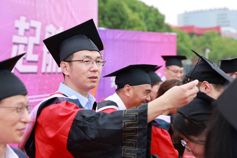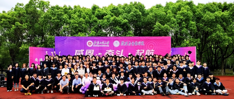 数理与金融学院党委书记周毅仁代表学院向全体毕业生表示热烈祝贺并送上真挚的寄语,副院长吴小太主持扶正流苏仪式。现场199名同学有序上台,学院党委委员、系主任潘海峰,学院纪委委员、系主任张玥,学院党委委员周金明等一起为同学们扶正流苏。毕业门、签名墙、“未来可期 属你最棒”的毕业纪念品、“写给十年后自己的一封信”“向老师献花”“感恩父母”“有229个名字的蛋糕”……每一个环节都有精心设计的满满仪式感。统计181李嫚嫚说,“大学期间受到了老师和同学们的很多帮助和照顾,跟老师提到要写下自己的十年约定,就在今天实现了,很激动也很感动,我将永远铭记,学校给了我的一路前进的动力和信心”。