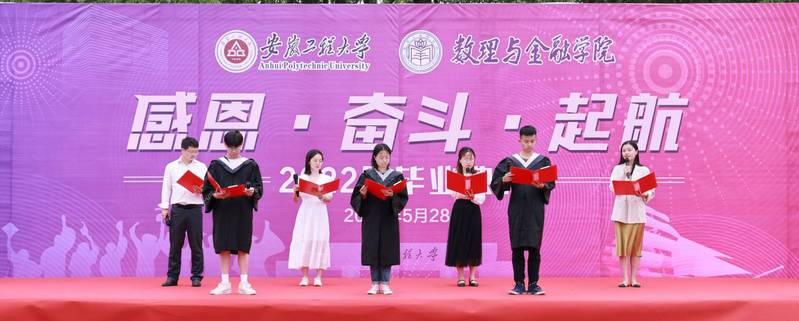 本网讯 5月28日上午8点,数理与金融学院以“感恩·奋斗·起航”为主题的2022届本科生毕业典礼在第二田径场举行。学院党政领导,毕业论文指导老师,全体辅导员以及2022届全体毕业生参加,典礼采用线上线下相结合的方式同步进行,学院党委副书记、纪委书记王燕主持本次典礼。