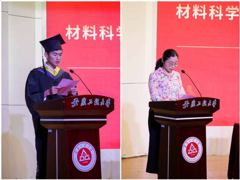 院党委书记王勇智宣读了《材料科学与工程学院2022年安徽省普通高等学校优秀毕业生名单》并颁发荣誉证书。